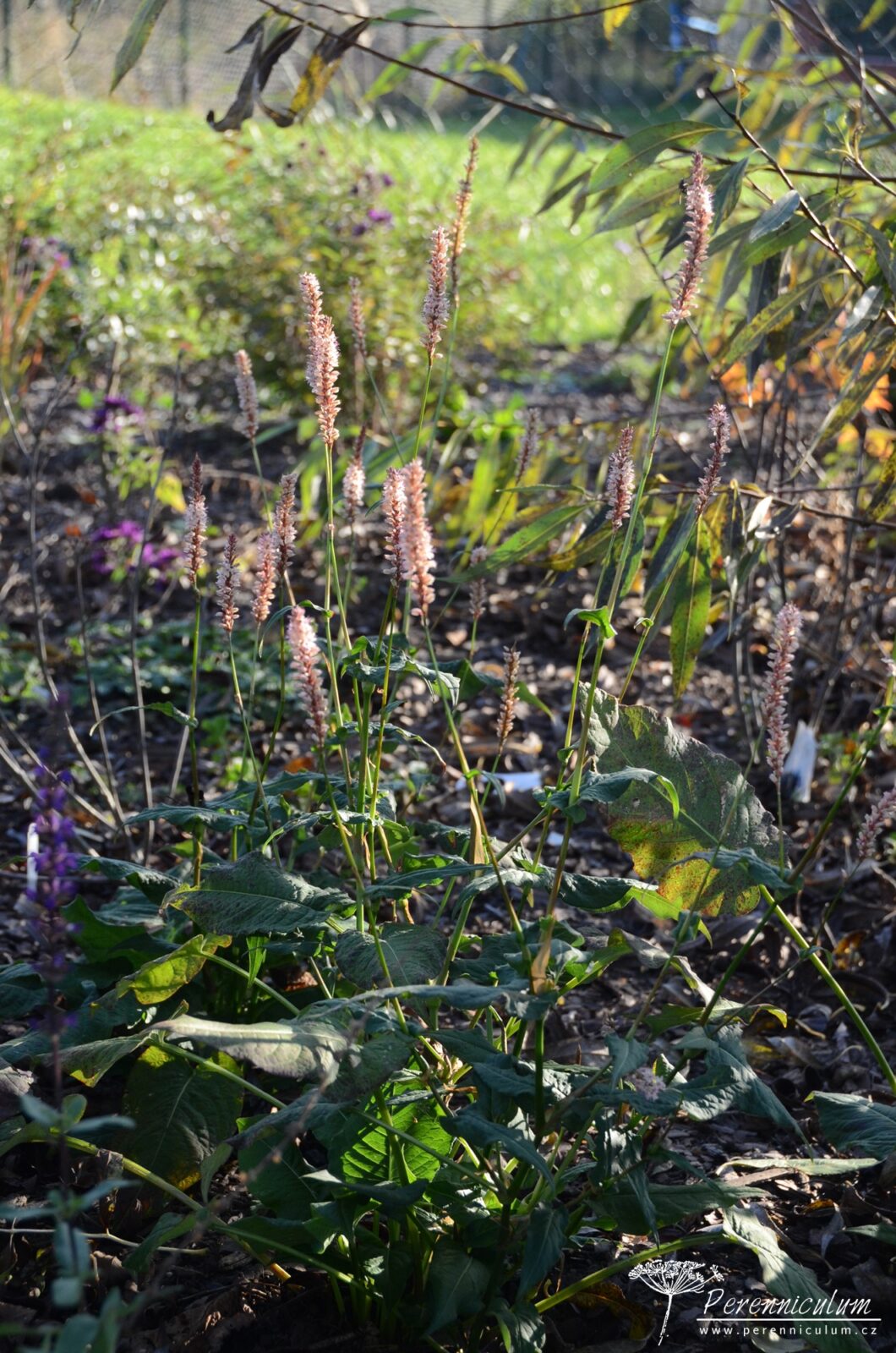 Persicaria amplexicaulis se daří na svěžích až vlhčích půdách na slunci i v polostínu. Může chvíli trvat než se adaptuje na daném stanovišti, ale poté se vitálně (ne však invazivně) rozrůstá. Často se vysévá. Výborně se hodí zejména do pozadí či střední partie perenového rabata. Oddenky zejména mladých rostlin mohou být náchylné k namrznutí, proto je vhodné přikrýt je na zimu chvojím či listím.