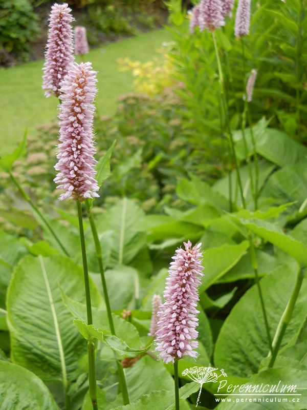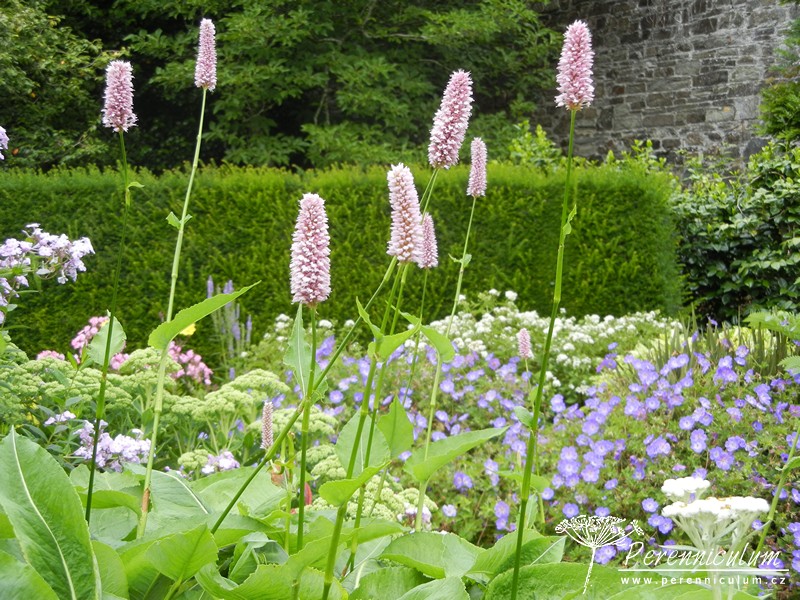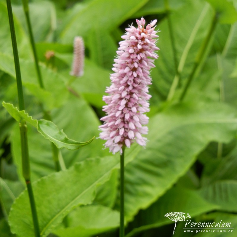 Persicaria bistorta je evropským domácím druhem, areál rozšíření sahá od Irska po Japonsko, na jih až do Turecka. Roste na subalpinských loukách, podél potoků a řek či podél silnic ve vlhkých strouhách. Díky vitálním oddenkům se trvalka rozrůstá a tvoří velké porosty (kolonie). Listy jsou oválné, 10 až 30 cm dlouhé se zvlněným okrajem, bílou centrální žilkou a vrásčitým povrchem na lícní straně. Na spodní straně jsou listy světle šedozelené. Nad porostem listů vyrůstají vzpřímené, nevětvené stonky nesoucí od června do července světle růžová, 3 - 8 cm dlouhá květenství hustě nahloučených malých kvítků. Persicaria bistorta někdy může v pozdním létě remontovat. Nejlépe se jí daří na vlhčích stanovištích, v humózní půdě.