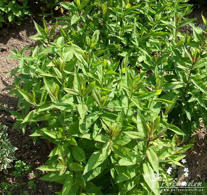 Phlox paniculata je domácí trvalkou Severní Ameriky, kde roste na mýtinách v řídkých lesích či křovinách, podél potoků na stráních, často na vápencovém podloží. Trsy se rozšiřují krátkými oddenky, ze kterých vyrůstá několik vzpřímených, částečně dřevnatějících stonků dosahujících v přírodě výšky až 2 m. Stonky nesou vstřícné, 5 - 15 cm dlouhé, široce kopinaté, matně sytě zelené listy. Plamenky kvetou až 5 týdnů. Bohatá květenství jsou složena z plochých, zhruba 3 cm velkých, často vonných květů.