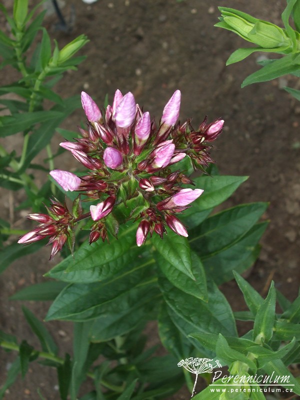 Phlox paniculata je domácí trvalkou Severní Ameriky, kde roste na mýtinách v řídkých lesích či křovinách, podél potoků na stráních, často na vápencovém podloží. Trsy se rozšiřují krátkými oddenky, ze kterých vyrůstá několik vzpřímených, částečně dřevnatějících stonků dosahujících v přírodě výšky až 2 m. Stonky nesou vstřícné, 5 - 15 cm dlouhé, široce kopinaté, matně sytě zelené listy. Plamenky kvetou až 5 týdnů. Bohatá květenství jsou složena z plochých, zhruba 3 cm velkých, často vonných květů.