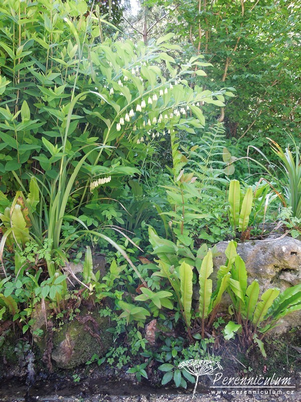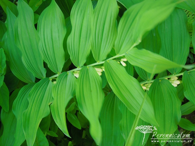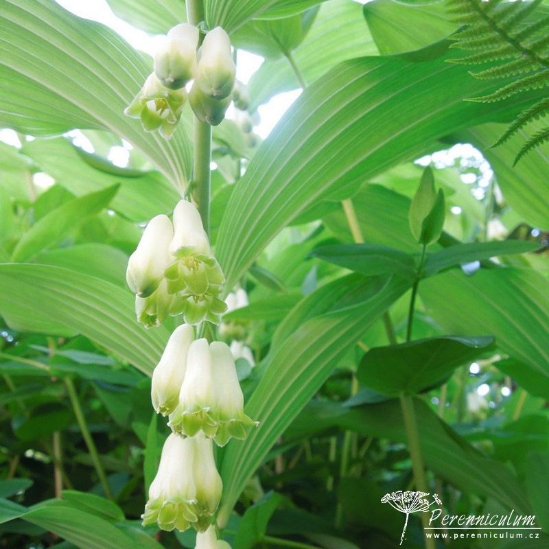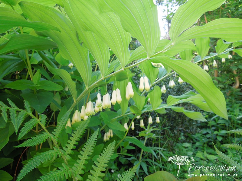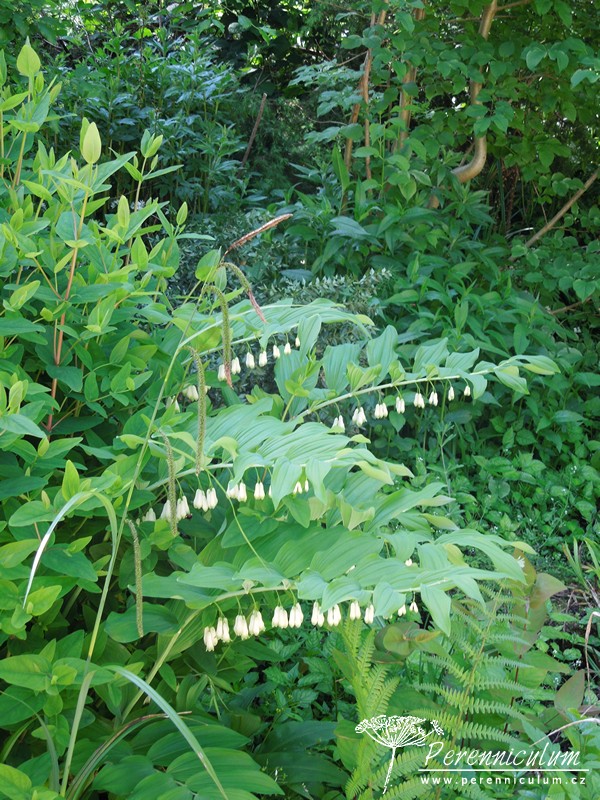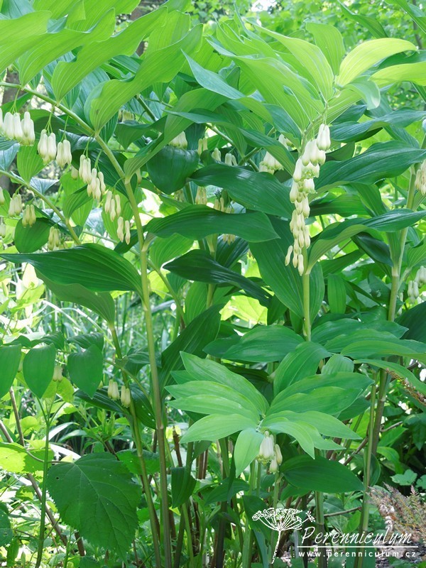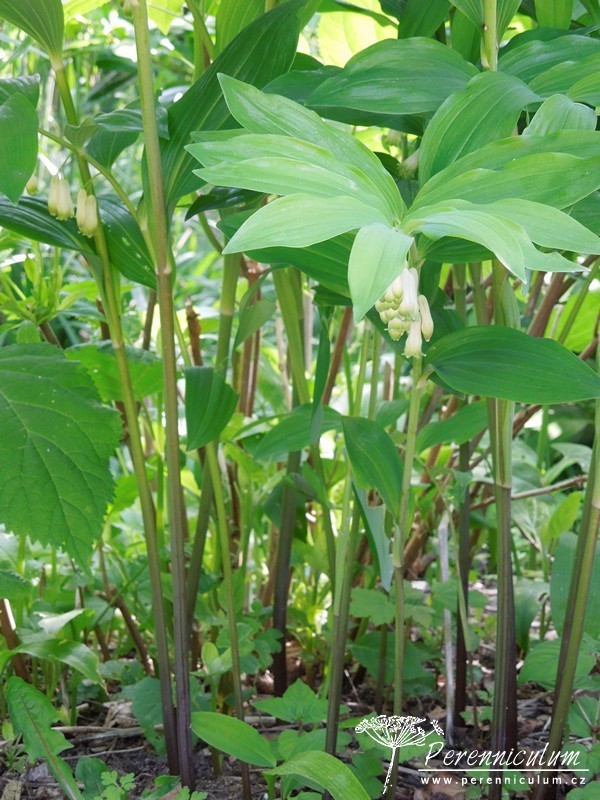 Polygonatum × hybridum je kříženec mezi druhy Polygonatum multiflorum a Polygonatum odoratum. Je pěstován v zahradách a v severní a západní Evropě zplaňuje, tudíž se s ním lze setkat i ve volné přírodě. Velmi aktivně se šíří robustními oddenky, ze kterých jednotlivě vyrůstají vzpřímené, pevné stonky, jejichž konce se elegantně sklánějí do oblouku. Na stoncích vyrůstají střídavě, v pravidelných rozestupech listy, které dodávají trvalce velmi architektonický vzhled. Krémově bílé květy zvonkovitého tvaru se světle zelenými konci se objevují v červnu. Na podzim dozrávají v modré dužnaté plody a listy se barví do atraktivní jasně žluté barvy.