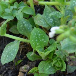 'Sissinghurst White', jak název napovídá, kvete čistě bílými květy. Listy jsou zelené s bílým mramorováním nebo tečkováním. Není tak bujně rostoucí jako modro- a růžovokvěté kultivary. Může být náchylný na padlí. Občas je zaměňován za podobně bíle kvetoucí P. officinalis 'White Wings', který má však růžové oko a neroste tak bujně. Kultivar byl množen a distribuován v zahradě Sissinghurst Castle, ale nepochází odsud.