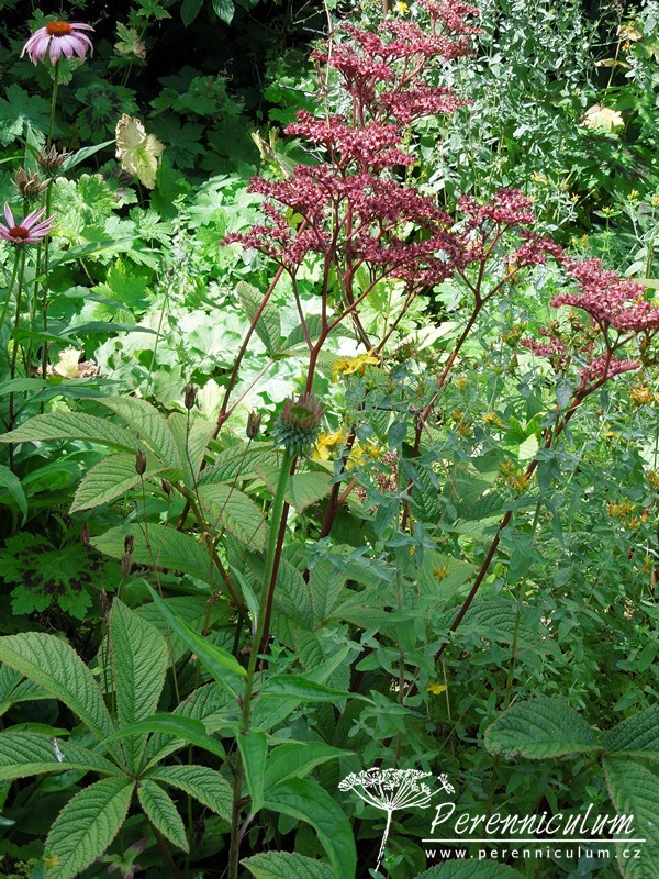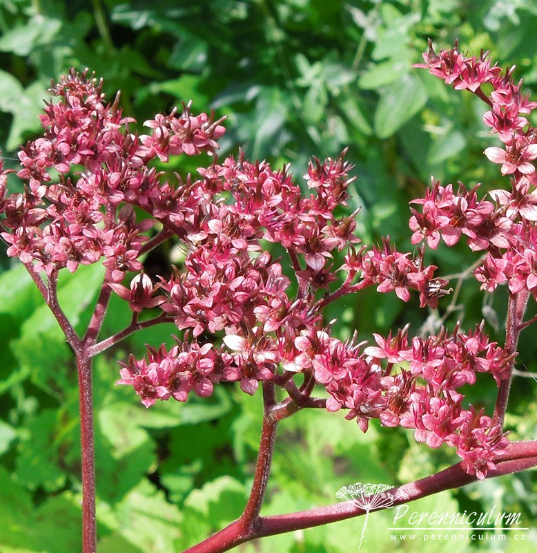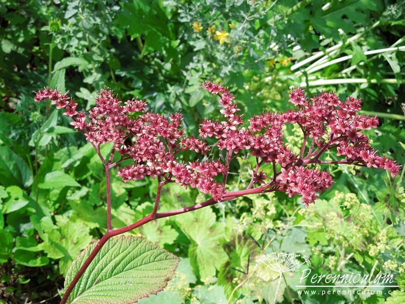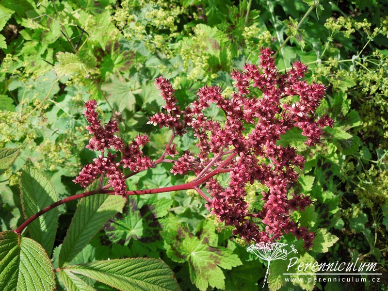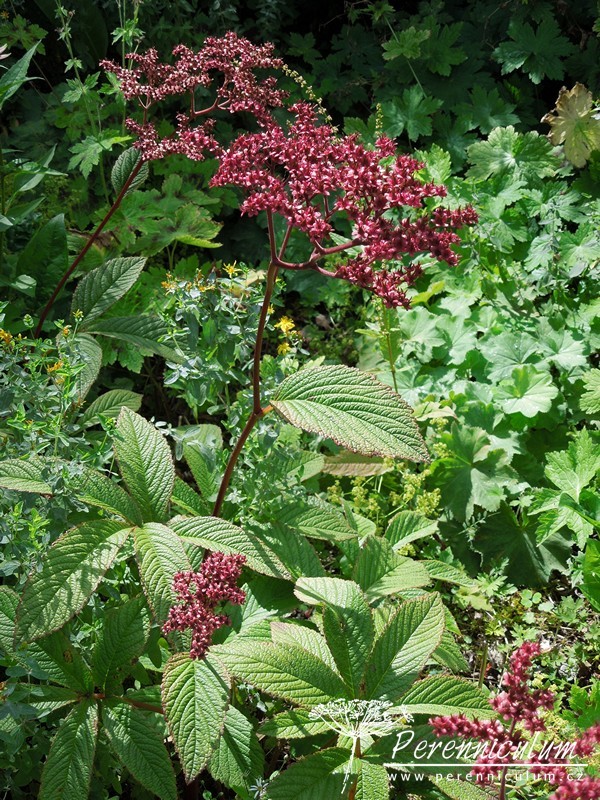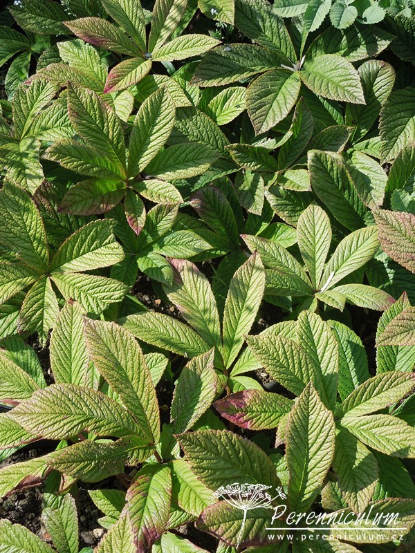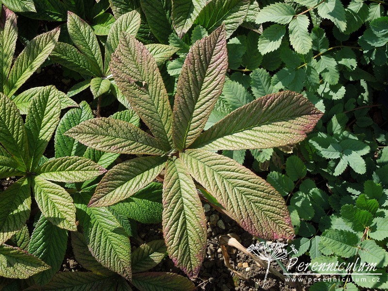 Rodgersia pinnata pochází ze západní části Číny, oblasti Yunnanu a jihu Sečuánu, kde roste na vlhkých travnatých místech mezi křovinami, v otevřených lesích a podél potoků v nadmořských výškách 2100 až 3600 m. n. m. Rostlina má robustní krátké oddenky, kterými se aktivně rozrůstá. Dlouze řapíkaté, 6 až 9 četné listy dorůstají výšky okolo jednoho metru. Řapíky tmavě zelené až načervenalé. Lístky bronzovozelené, svraskalé, na líci lesklé, na rubu podél žilnatiny chlupaté, okraje dvojitě zubaté. Na podzim se barví do červenobronzova. V červnu až červenci se nad masou listů, ve výšce až 1,5 metru objevují květenství složená z malých, krémových až lososově růžových kvítků.