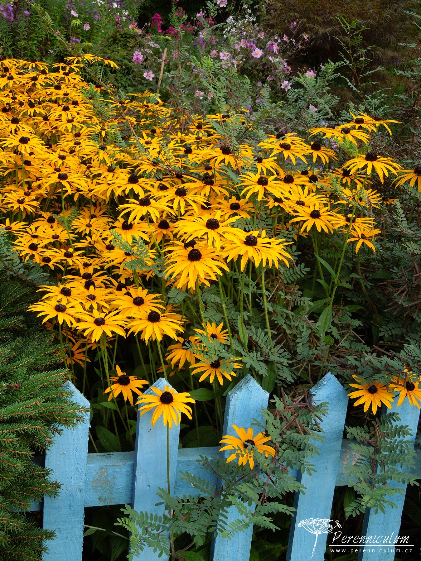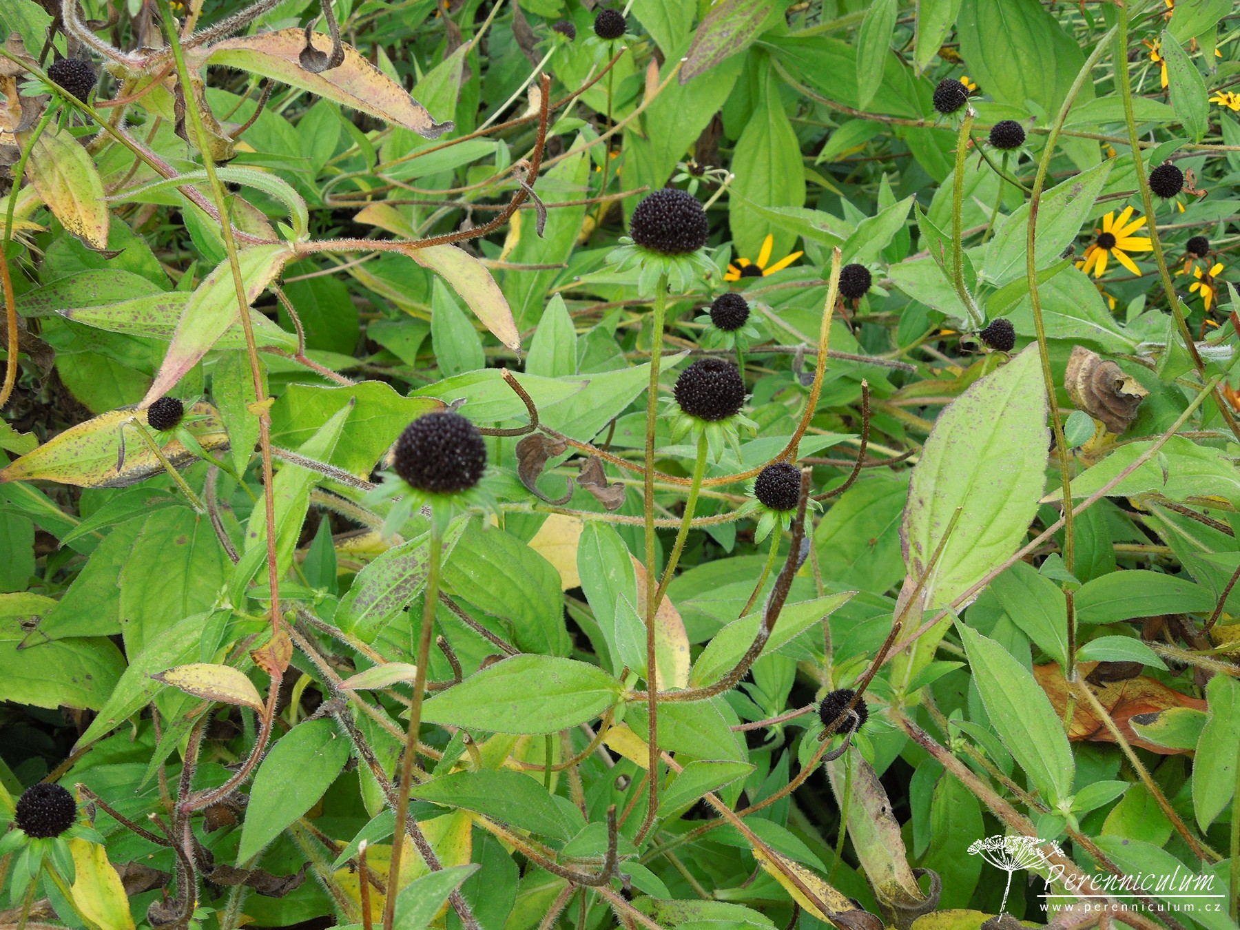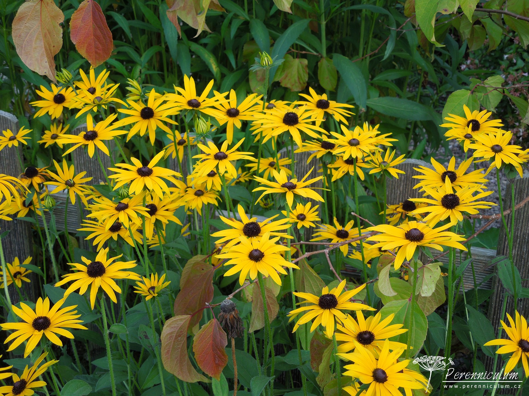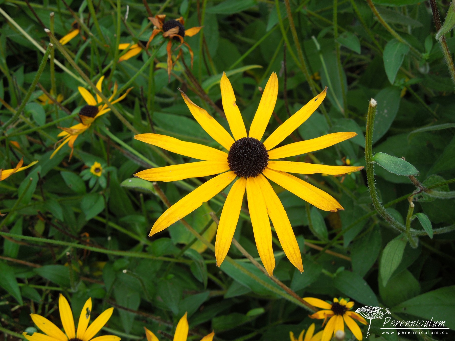 var. deamii pochází ze severovýchodu USA - oblast Ohio, Indiana a Illinois. Bazální listy jsou vejčité a hrubě zubaté. Je o něco vyšší než často vysazovaný kultivar 'Goldsturm', dosahuje až 90 cm a také lépe snáší sucho. Má bohatou násadu květů, které měří až 7 cm v průměru a kvetou od srpna do října. Kvete až po var. speciosa.