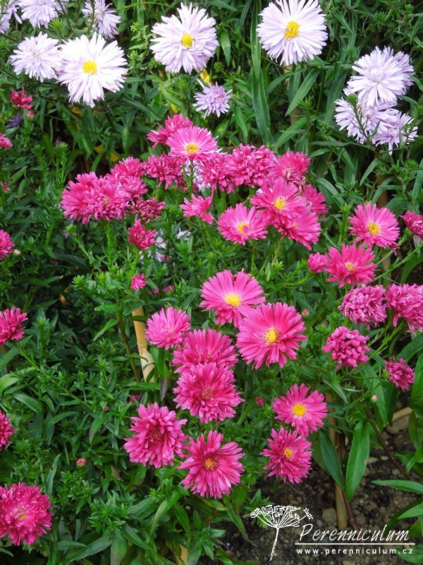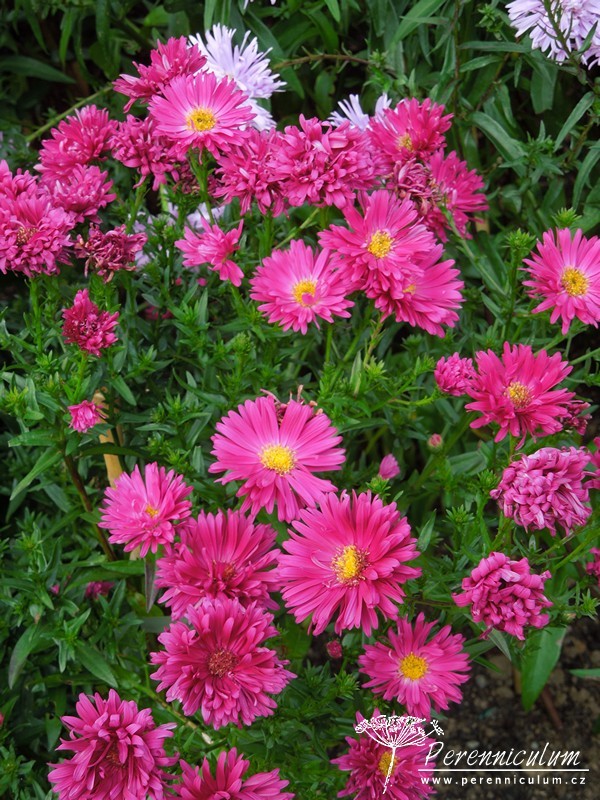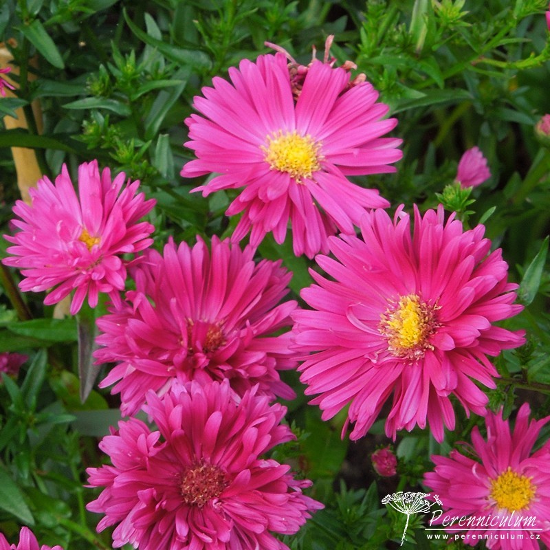 Symphyotrichum novi-belgii (dříve Aster novi-belgii) pochází z východu Severní Ameriky, kde roste ve vlhkých křovinách, na loukách i na pobřeží. V přírodě se dorůstá až 1,2 m. Kompaktní habitus je statný, vzpřímený. Listy jsou kopinaté až protáhle kopinaté, hladké, lesklé, 5 až 12 cm dlouhé. Kultivary jsou ve výšce i habitu velmi variabilní. Doba kvetení je obvykle od poloviny září do konce října, rané kultivary kvetou už od začátku září a pozdní naopak nerozkvétají až do října.