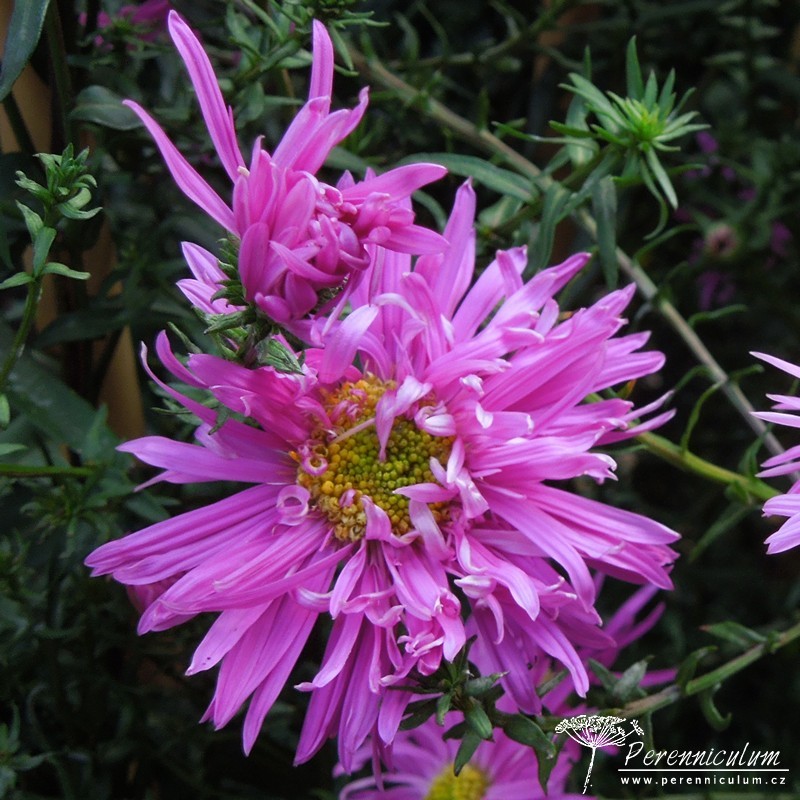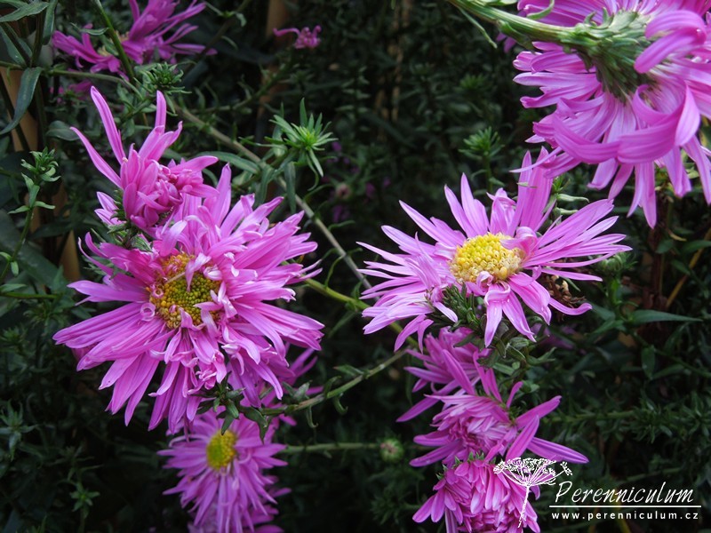 Symphyotrichum novi-belgii (dříve Aster novi-belgii) pochází z východu Severní Ameriky, kde roste ve vlhkých křovinách, na loukách i na pobřeží. V přírodě se dorůstá až 1,2 m. Kompaktní habitus je statný, vzpřímený. Listy jsou kopinaté až protáhle kopinaté, hladké, lesklé, 5 až 12 cm dlouhé. Kultivary jsou ve výšce i habitu velmi variabilní. Doba kvetení je obvykle od poloviny září do konce října, rané kultivary kvetou už od začátku září a pozdní naopak nerozkvétají až do října.
