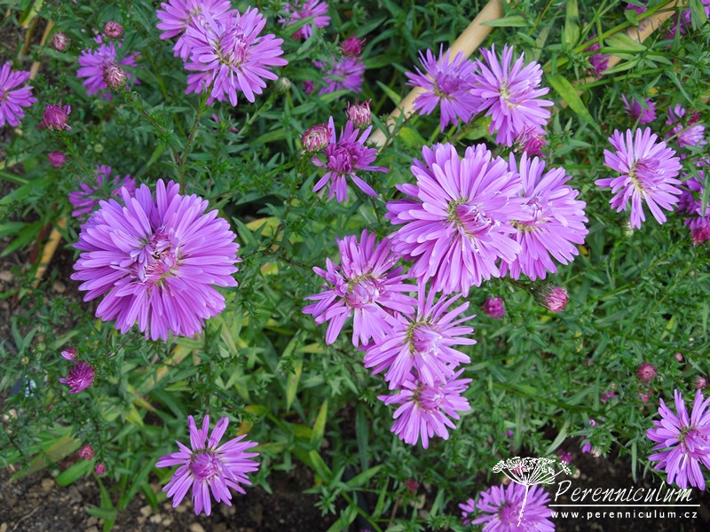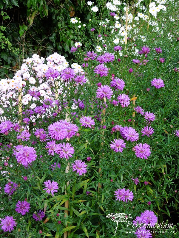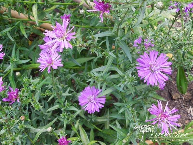 Symphyotrichum novi-belgii (dříve Aster novi-belgii) pochází z východu Severní Ameriky, kde roste ve vlhkých křovinách, na loukách i na pobřeží. V přírodě se dorůstá až 1,2 m. Kompaktní habitus je statný, vzpřímený. Listy jsou kopinaté až protáhle kopinaté, hladké, lesklé, 5 až 12 cm dlouhé. Kultivary jsou ve výšce i habitu velmi variabilní. Doba kvetení je obvykle od poloviny září do konce října, rané kultivary kvetou už od začátku září a pozdní naopak nerozkvétají až do října.