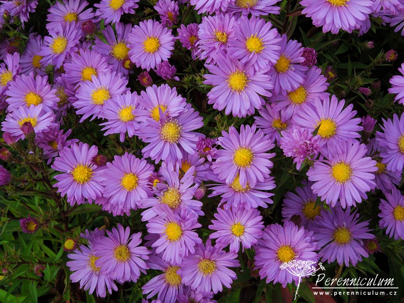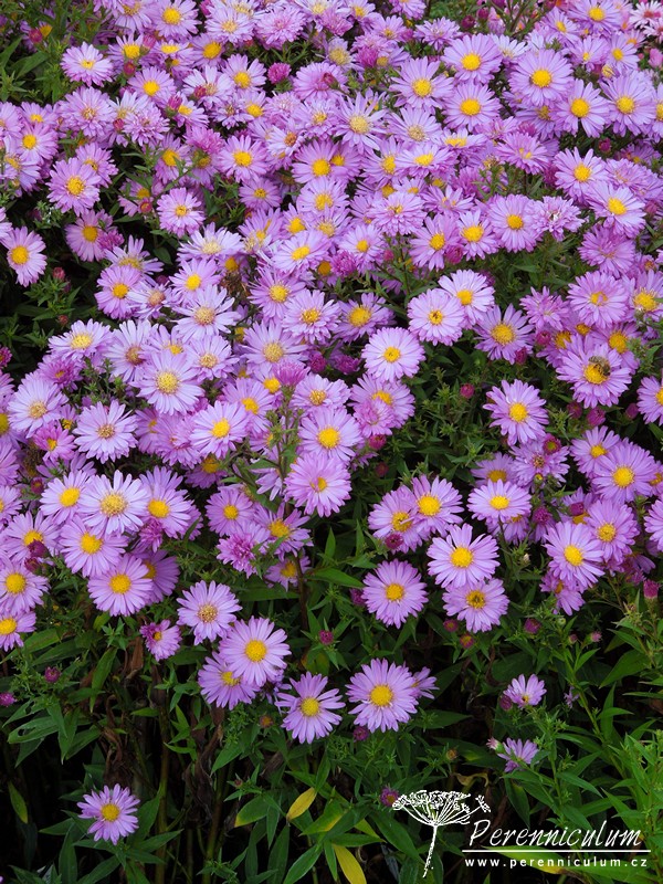 Symphyotrichum novi-belgii (dříve Aster novi-belgii) pochází z východu Severní Ameriky, kde roste ve vlhkých křovinách, na loukách i na pobřeží. V přírodě se dorůstá až 1,2 m. Kompaktní habitus je statný, vzpřímený. Listy jsou kopinaté až protáhle kopinaté, hladké, lesklé, 5 až 12 cm dlouhé. Kultivary jsou ve výšce i habitu velmi variabilní. Doba kvetení je obvykle od poloviny září do konce října, rané kultivary kvetou už od začátku září a pozdní naopak nerozkvétají až do října.