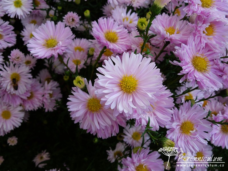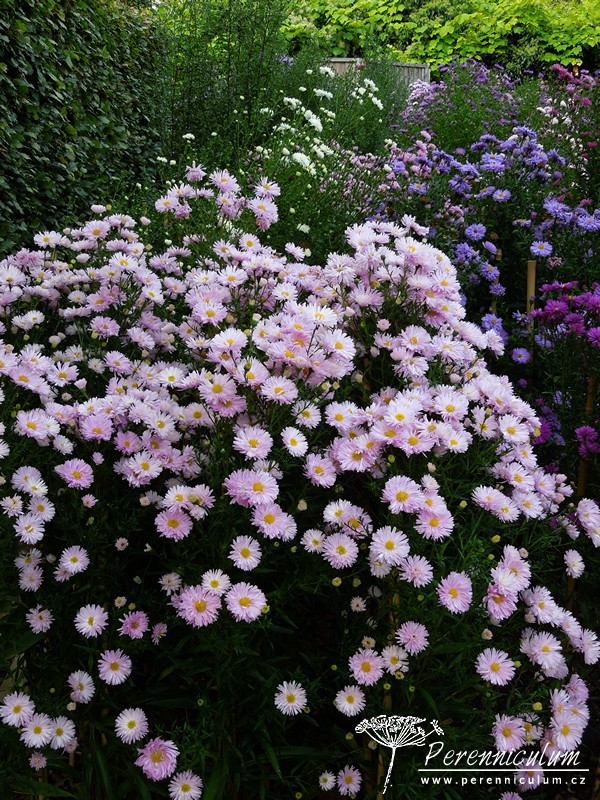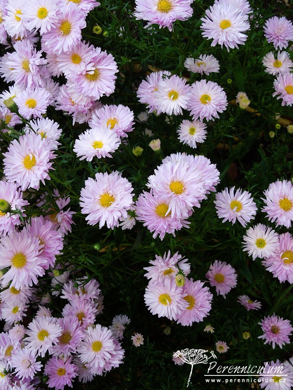 Symphyotrichum novi-belgii (dříve Aster novi-belgii) pochází z východu Severní Ameriky, kde roste ve vlhkých křovinách, na loukách i na pobřeží. V přírodě se dorůstá až 1,2 m. Kompaktní habitus je statný, vzpřímený. Listy jsou kopinaté až protáhle kopinaté, hladké, lesklé, 5 až 12 cm dlouhé. Kultivary jsou ve výšce i habitu velmi variabilní. Doba kvetení je obvykle od poloviny září do konce října, rané kultivary kvetou už od začátku září a pozdní naopak nerozkvétají až do října.