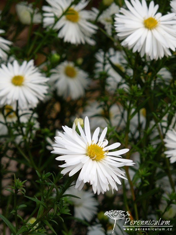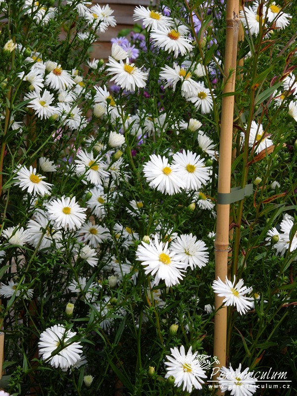 Symphyotrichum novi-belgii (dříve Aster novi-belgii) pochází z východu Severní Ameriky, kde roste ve vlhkých křovinách, na loukách i na pobřeží. V přírodě se dorůstá až 1,2 m. Kompaktní habitus je statný, vzpřímený. Listy jsou kopinaté až protáhle kopinaté, hladké, lesklé, 5 až 12 cm dlouhé. Kultivary jsou ve výšce i habitu velmi variabilní. Doba kvetení je obvykle od poloviny září do konce října, rané kultivary kvetou už od začátku září a pozdní naopak nerozkvétají až do října.