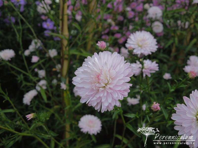 Symphyotrichum novi-belgii (dříve Aster novi-belgii) pochází z východu Severní Ameriky, kde roste ve vlhkých křovinách, na loukách i na pobřeží. V přírodě se dorůstá až 1,2 m. Kompaktní habitus je statný, vzpřímený. Listy jsou kopinaté až protáhle kopinaté, hladké, lesklé, 5 až 12 cm dlouhé. Kultivary jsou ve výšce i habitu velmi variabilní. Doba kvetení je obvykle od poloviny září do konce října, rané kultivary kvetou už od začátku září a pozdní naopak nerozkvétají až do října.