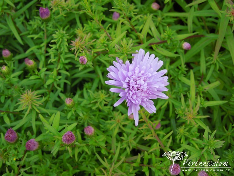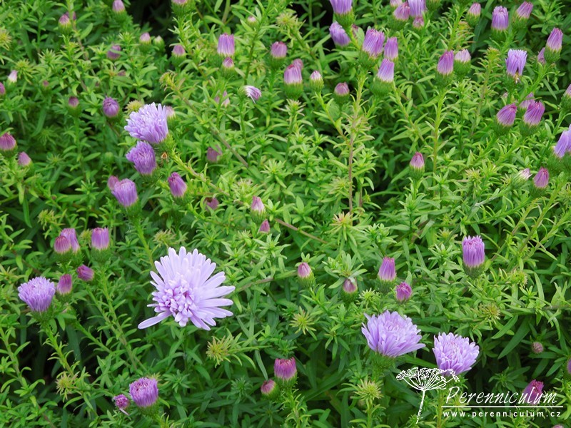 Symphyotrichum novi-belgii (dříve Aster novi-belgii) pochází z východu Severní Ameriky, kde roste ve vlhkých křovinách, na loukách i na pobřeží. V přírodě se dorůstá až 1,2 m. Kompaktní habitus je statný, vzpřímený. Listy jsou kopinaté až protáhle kopinaté, hladké, lesklé, 5 až 12 cm dlouhé. Kultivary jsou ve výšce i habitu velmi variabilní. Doba kvetení je obvykle od poloviny září do konce října, rané kultivary kvetou už od začátku září a pozdní naopak nerozkvétají až do října.