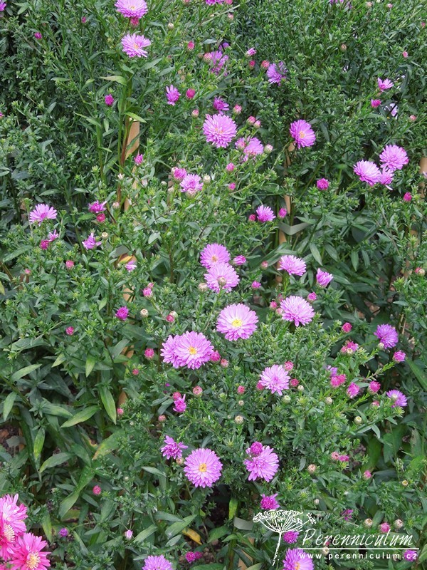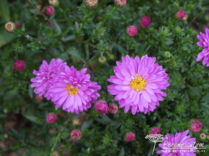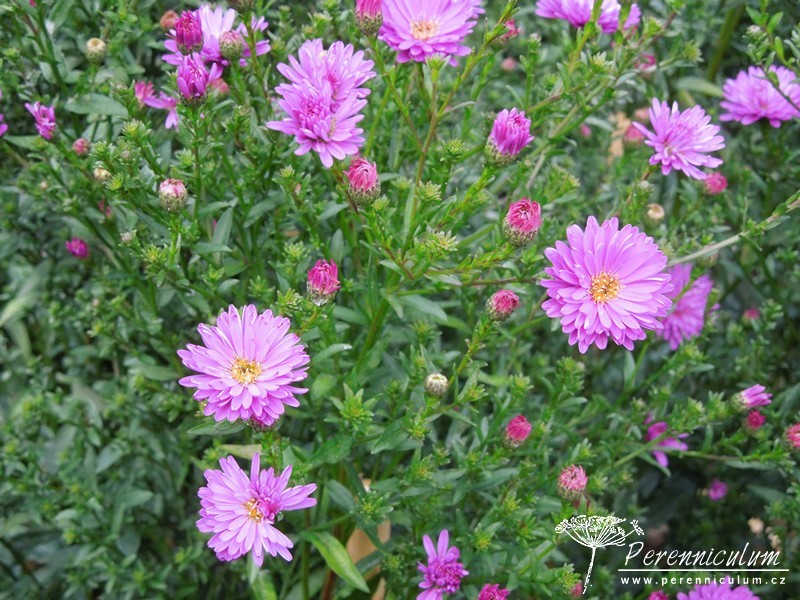 Symphyotrichum novi-belgii (dříve Aster novi-belgii) pochází z východu Severní Ameriky, kde roste ve vlhkých křovinách, na loukách i na pobřeží. V přírodě se dorůstá až 1,2 m. Kompaktní habitus je statný, vzpřímený. Listy jsou kopinaté až protáhle kopinaté, hladké, lesklé, 5 až 12 cm dlouhé. Kultivary jsou ve výšce i habitu velmi variabilní. Doba kvetení je obvykle od poloviny září do konce října, rané kultivary kvetou už od začátku září a pozdní naopak nerozkvétají až do října.