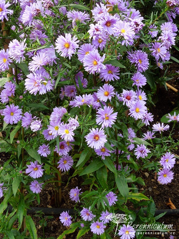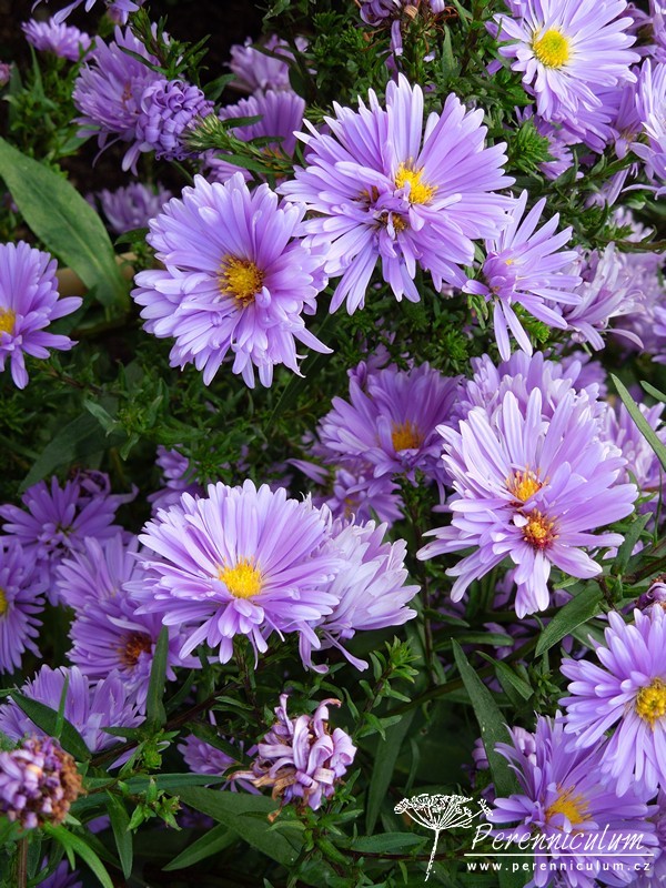 Symphyotrichum novi-belgii (dříve Aster novi-belgii) pochází z východu Severní Ameriky, kde roste ve vlhkých křovinách, na loukách i na pobřeží. V přírodě se dorůstá až 1,2 m. Kompaktní habitus je statný, vzpřímený. Listy jsou kopinaté až protáhle kopinaté, hladké, lesklé, 5 až 12 cm dlouhé. Kultivary jsou ve výšce i habitu velmi variabilní. Doba kvetení je obvykle od poloviny září do konce října, rané kultivary kvetou už od začátku září a pozdní naopak nerozkvétají až do října.