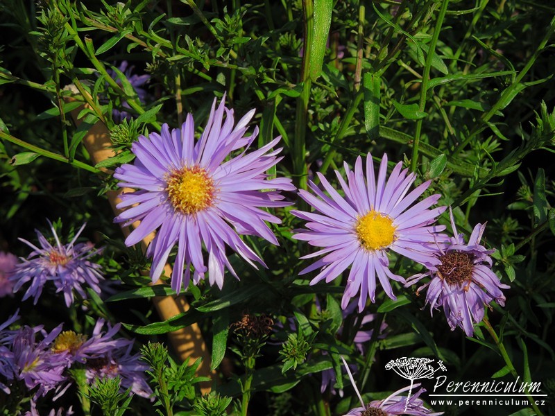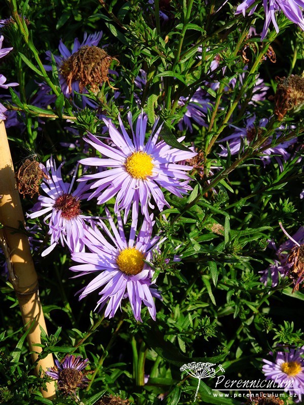 Symphyotrichum novi-belgii (dříve Aster novi-belgii) pochází z východu Severní Ameriky, kde roste ve vlhkých křovinách, na loukách i na pobřeží. V přírodě se dorůstá až 1,2 m. Kompaktní habitus je statný, vzpřímený. Listy jsou kopinaté až protáhle kopinaté, hladké, lesklé, 5 až 12 cm dlouhé. Kultivary jsou ve výšce i habitu velmi variabilní. Doba kvetení je obvykle od poloviny září do konce října, rané kultivary kvetou už od začátku září a pozdní naopak nerozkvétají až do října.