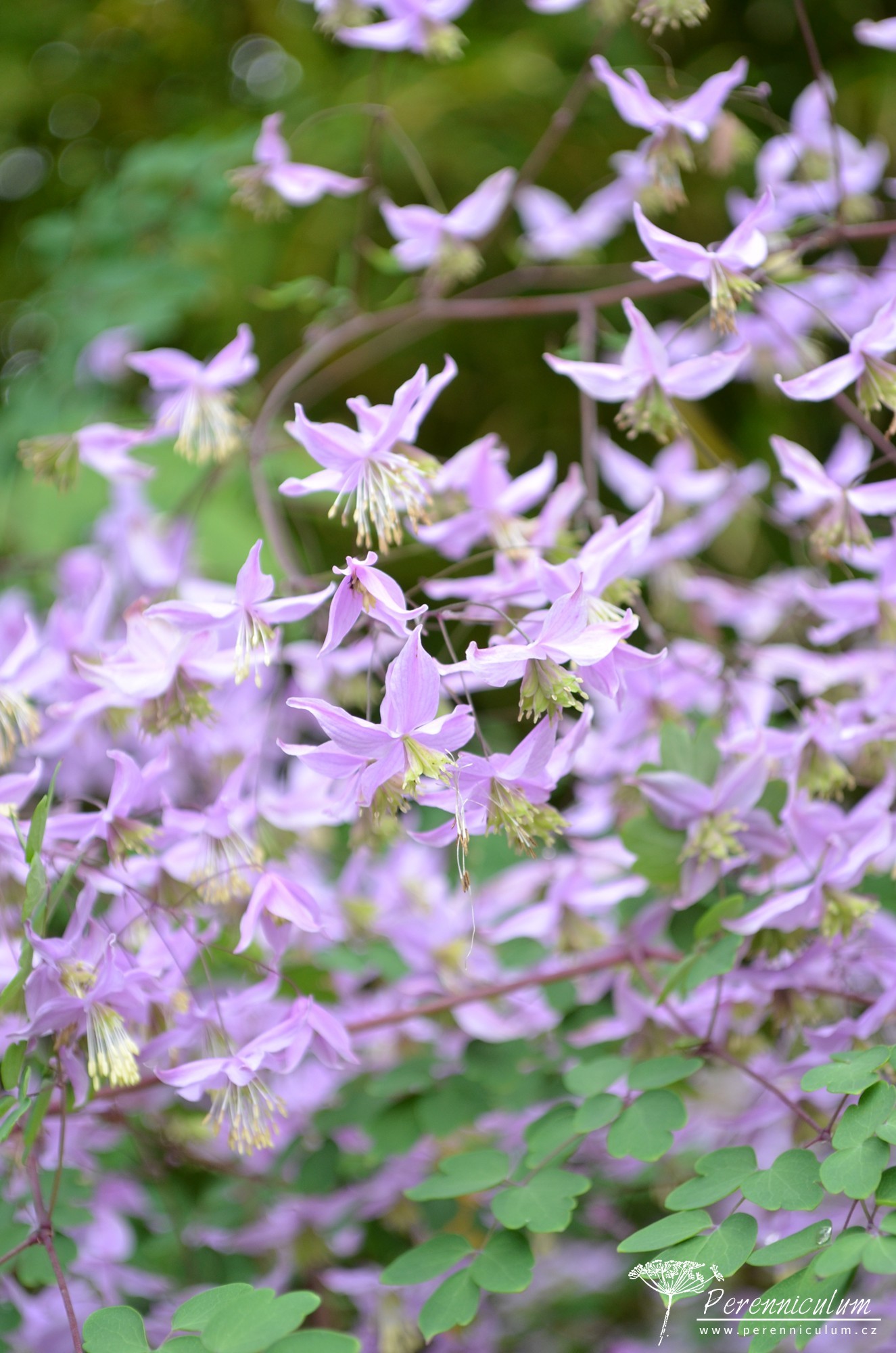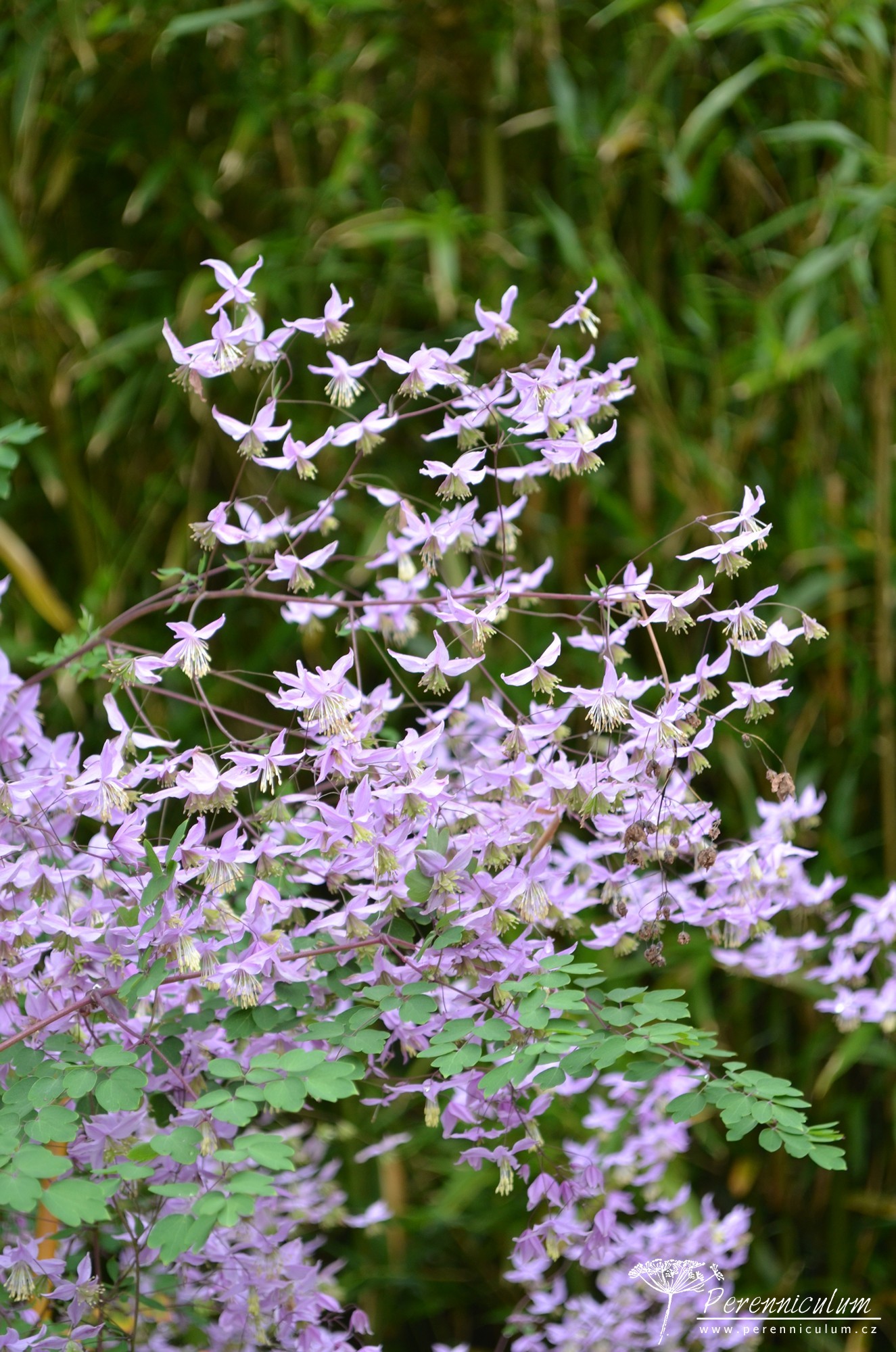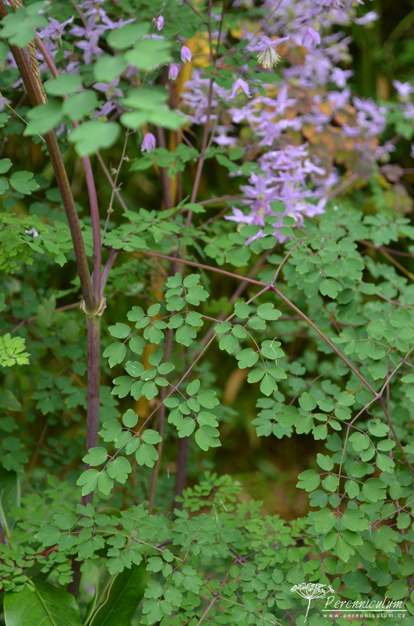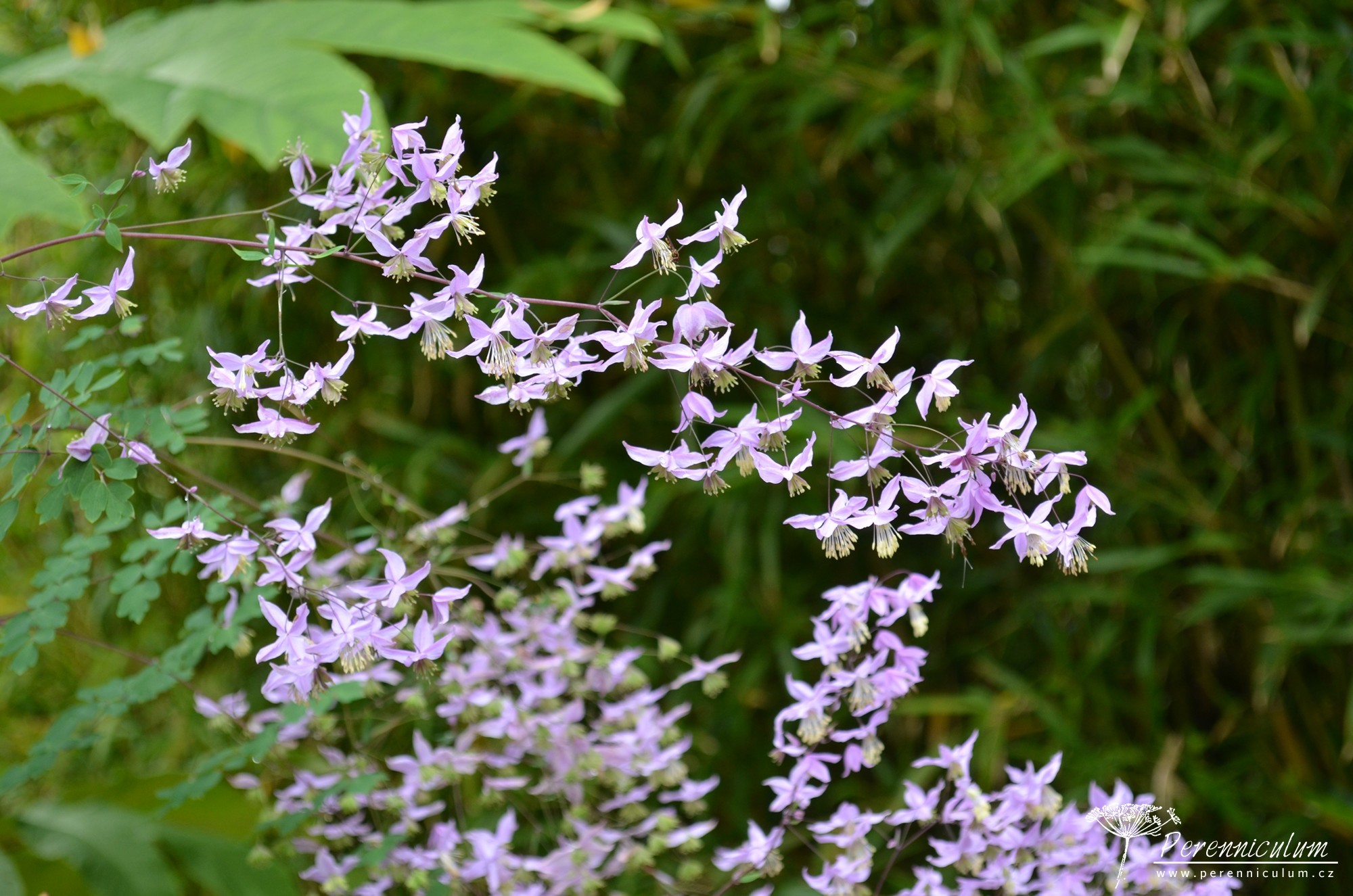 Thalictrum delavayi pochází ze severozápadní Číny, kde roste na alpinských loukách, vlhkých skalnatých útesech, v křovinách i jako doprovod vodních toků v nadmořských výškách od 1800 do 3400 m.n.m. Dosahuje zde výšky až 2 metrů. Až 40 cm velké listy jsou opakovaně dělené (3 až 4 krát zpeřené). Lístky jsou 0,5 až 2 cm malé, kulaté až elipčité, modrozelené až sivozelené. Jemně dělené listy dodávají trvalce spolu s květy něžný, rozevlátý habitus. Květy jsou uspořádány v rozvolněné, až 40 cm velké vrcholové latě na tmavě purpurových stoncích. Zhruba 2 cm velké květy postrádají korunní plátky, hlavní efekt zajišťují lila růžové, kališní plátky s velkým množstvím pastelově žlutých tyčinek.