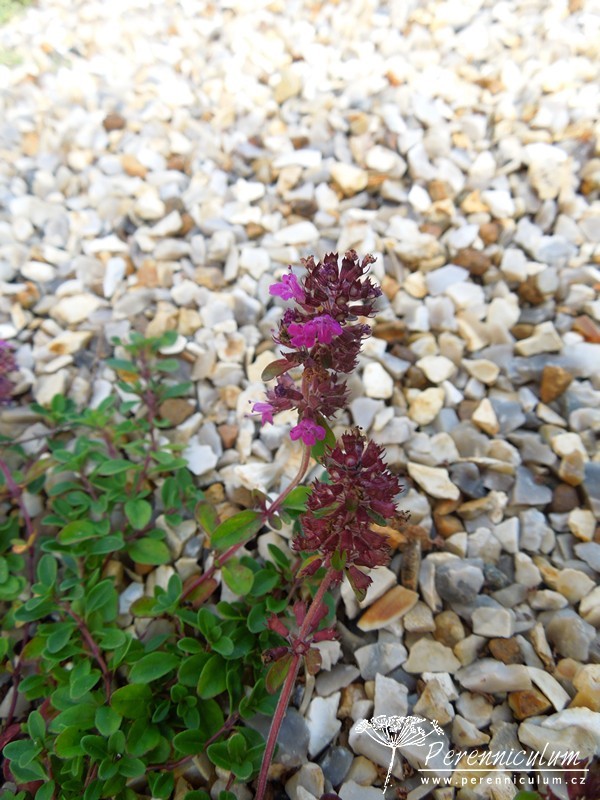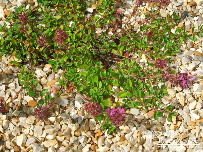 Thymus serpyllum vytváří nízké, půdokryvné koberce, jen do 10 cm vysoké. Plazivé, často dřevnatějící, horizontální stonky mohou zakořeňovat. Vzpřímené stonky často vyšší než 10 cm nesou kulovité až elipsovité květenství (lichoklas) složené z malých, hluchavkovitých, růžových až světle purpurových kvítků. Listy jsou sytě zelené, kožovité, eliptické až obvejčité, max. 1 cm velké. Stonek a báze listů jsou řídce porostlé tenkými, bílými chloupky.
