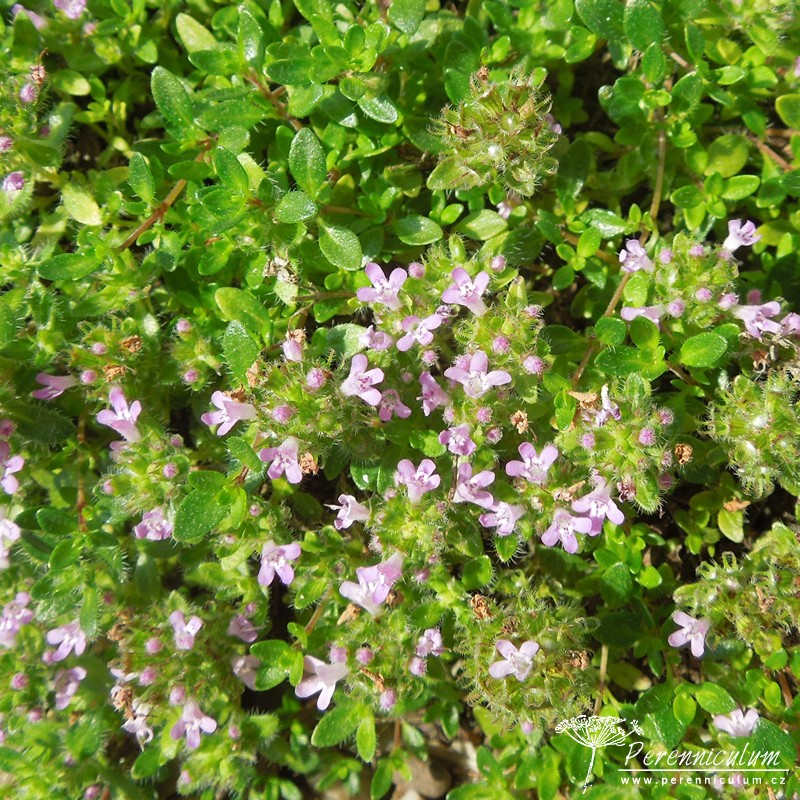 Thymus serpyllum vytváří nízké, půdokryvné koberce, jen do 10 cm vysoké. Plazivé, často dřevnatějící, horizontální stonky mohou zakořeňovat. Vzpřímené stonky často vyšší než 10 cm nesou kulovité až elipsovité květenství (lichoklas) složené z malých, hluchavkovitých, růžových až světle purpurových kvítků. Listy jsou sytě zelené, kožovité, eliptické až obvejčité, max. 1 cm velké. Stonek a báze listů jsou řídce porostlé tenkými, bílými chloupky.