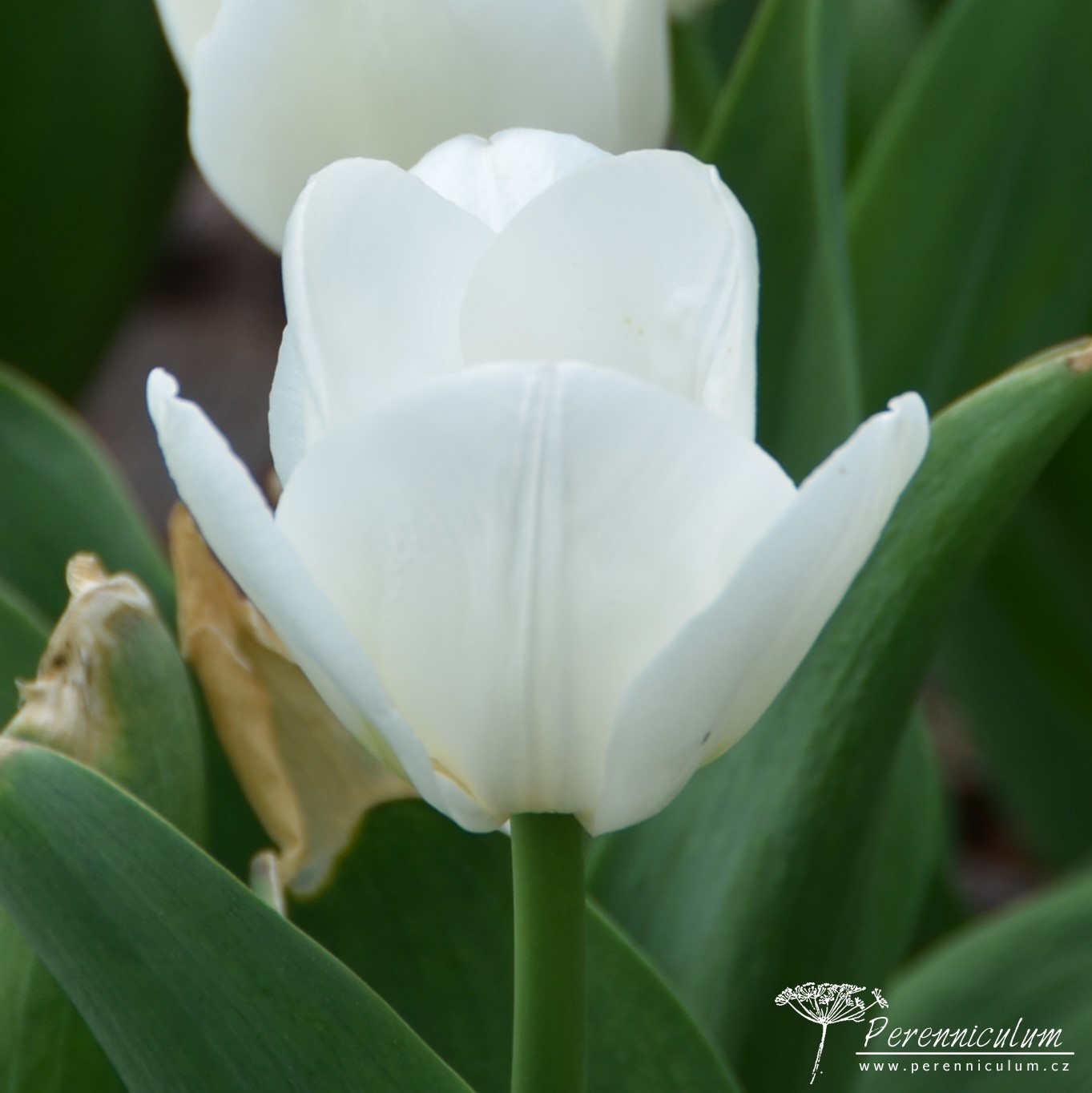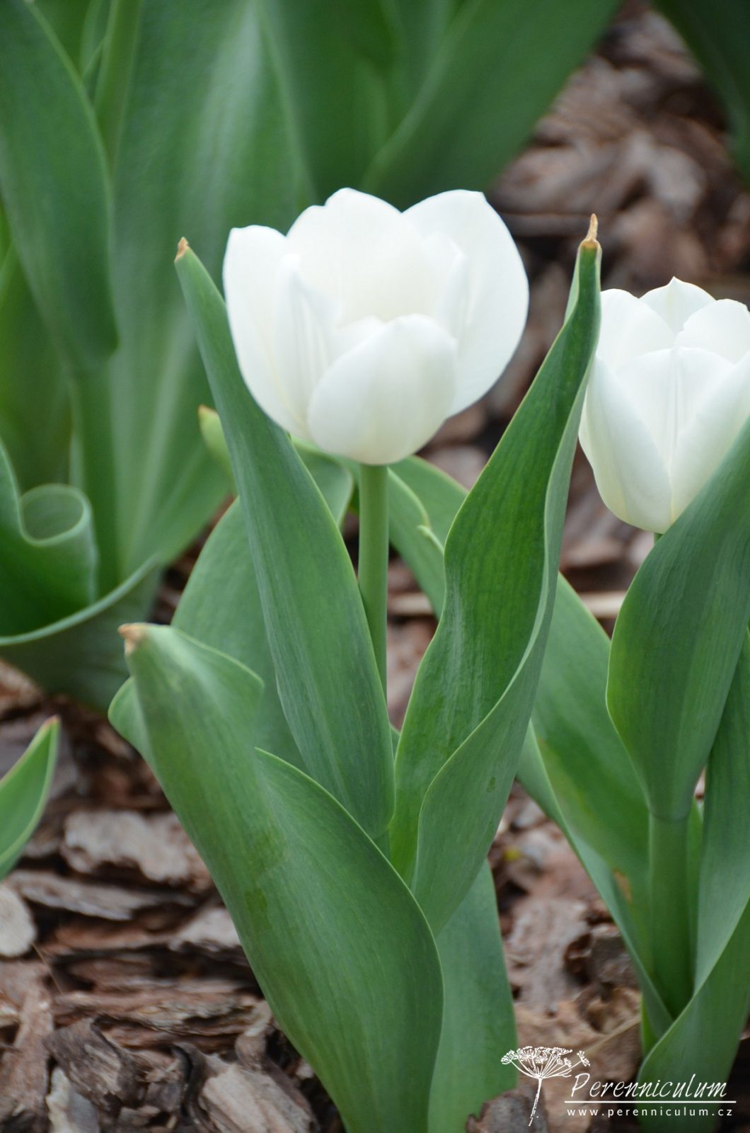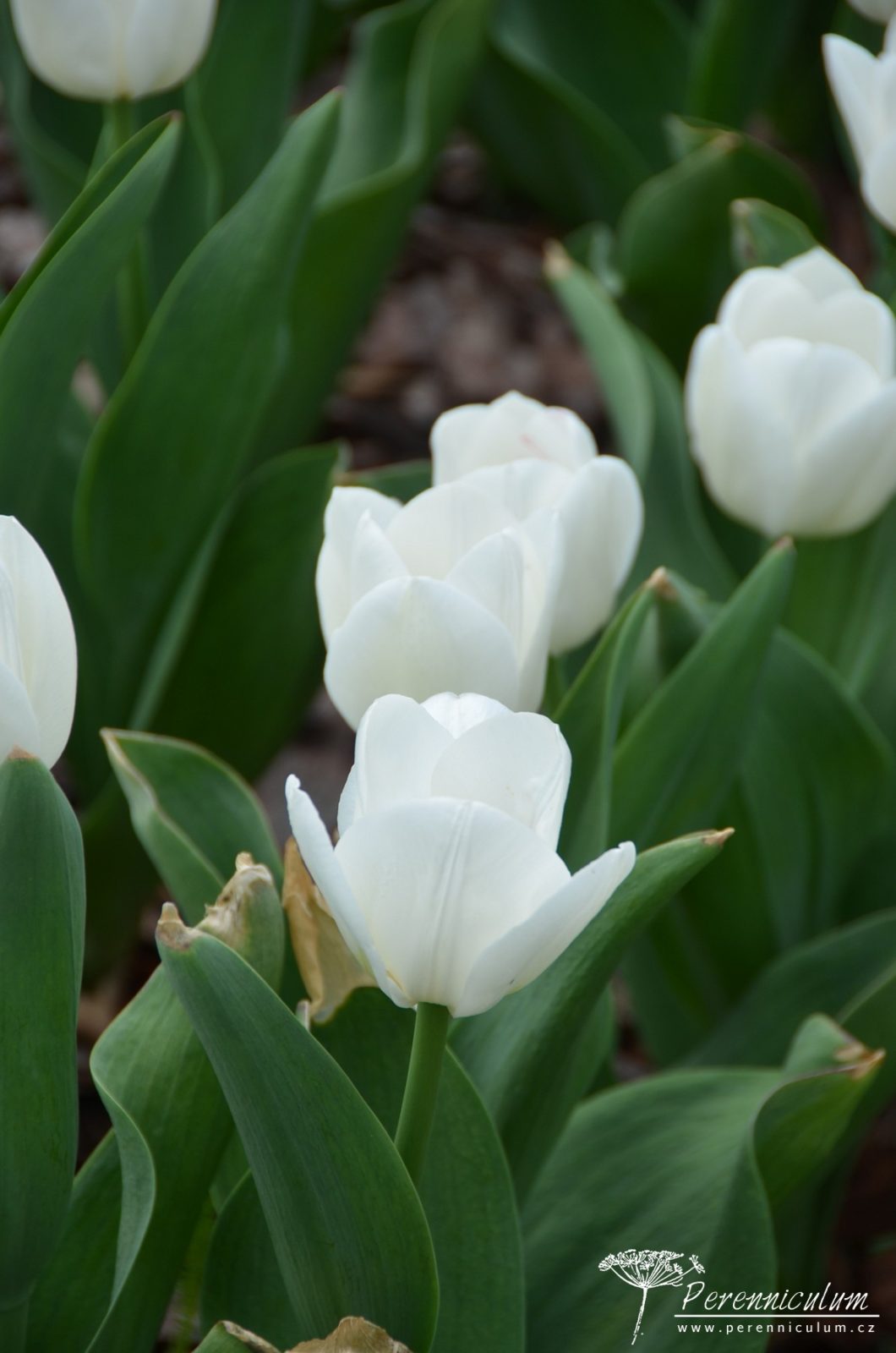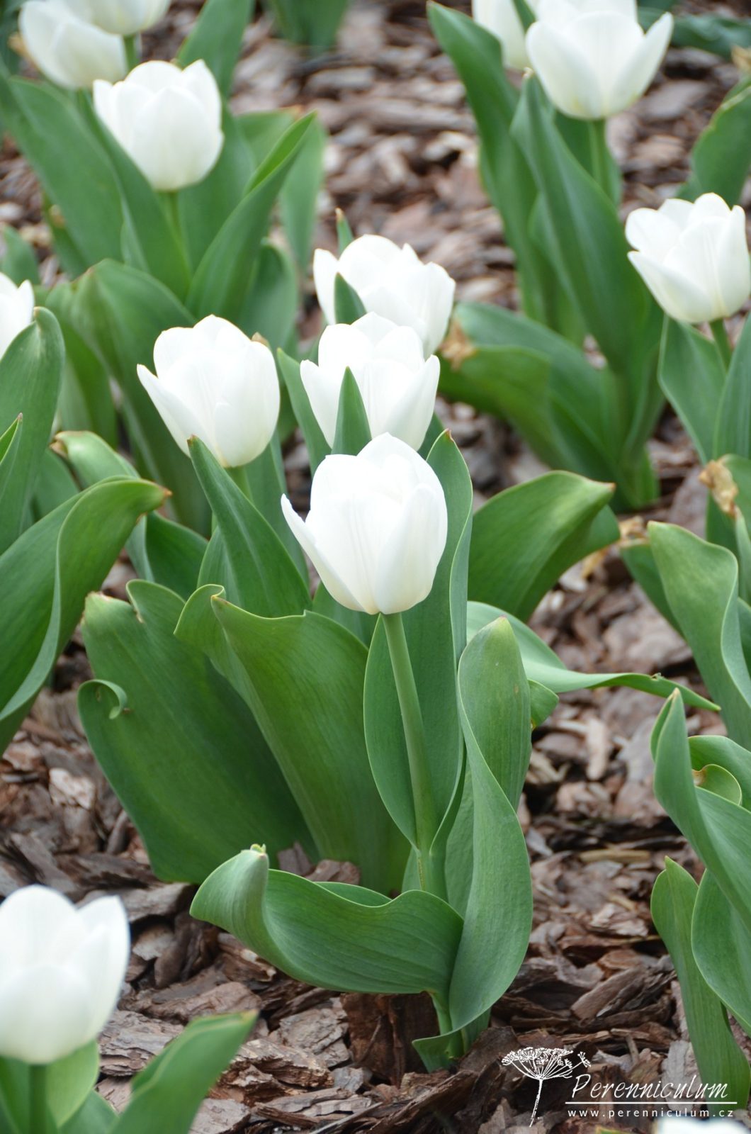 Tulipa 'Royal Virgin' má nejbělejší květy ze všech Triumf hybridů. Krásně tvarované, pohárkovité květy kvetou na přelomu dubna a května. Dosahuje výšky okolo 50 cm.