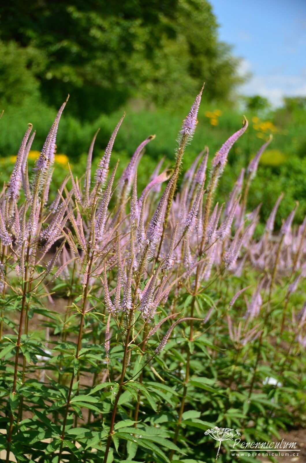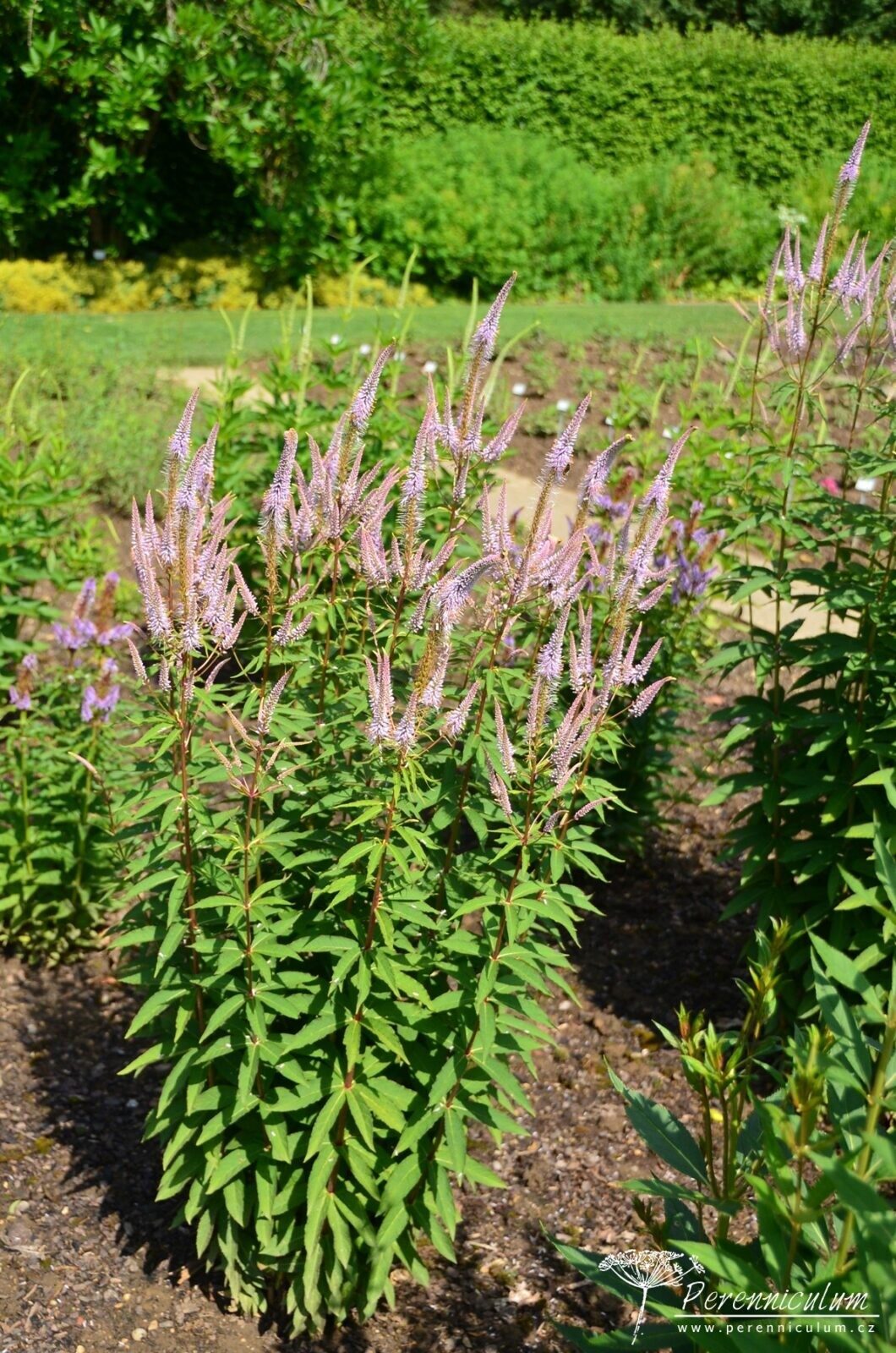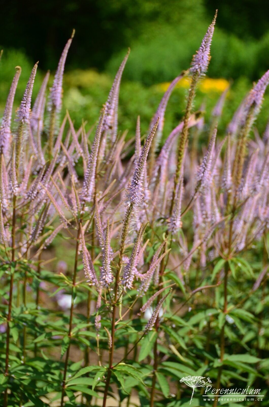 Veronicastrum virginicum je domácí trvalkou východní části Severní Ameriky, kde roste na loukách, prériích, ve světlých lesích a křovinách. Na vysokých přímých stoncích vyrůstají po 3 až 6 v přeslenech úzké, kopinaté, až 20 cm dlouhé listy. Nad posledním přeslenem listů se stonek obvykle větví, aby dal vznik několika hroznovitým, úzkým, špičatým květenstvím. Centrální (primární) hrozen se otevírá jako první a asi v půlce jeho kvetení začínají nakvétat sekundární hrozny, které jej v kruhu obklopují. Sekundární hrozny jsou obvykle kratší a užší. Květenství s poupaty se objevuje od června, ale naplno kvete až během července a srpna. Po odkvětu zůstává Veronicastrum virginicum atraktivní svými plodenstvími, která drží pohromadě (nerozpadají se) dlouho do zimy. Velmi dobře se kombinuje s vysokými trávami či trvalkami s kontrastním kulovitým květenstvím (např. Echinops ritro, Eryngium sp.). Díky své výšce se hodí spíše do pozadí perenového rabata.