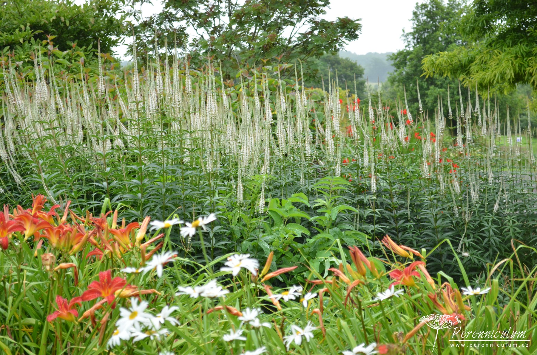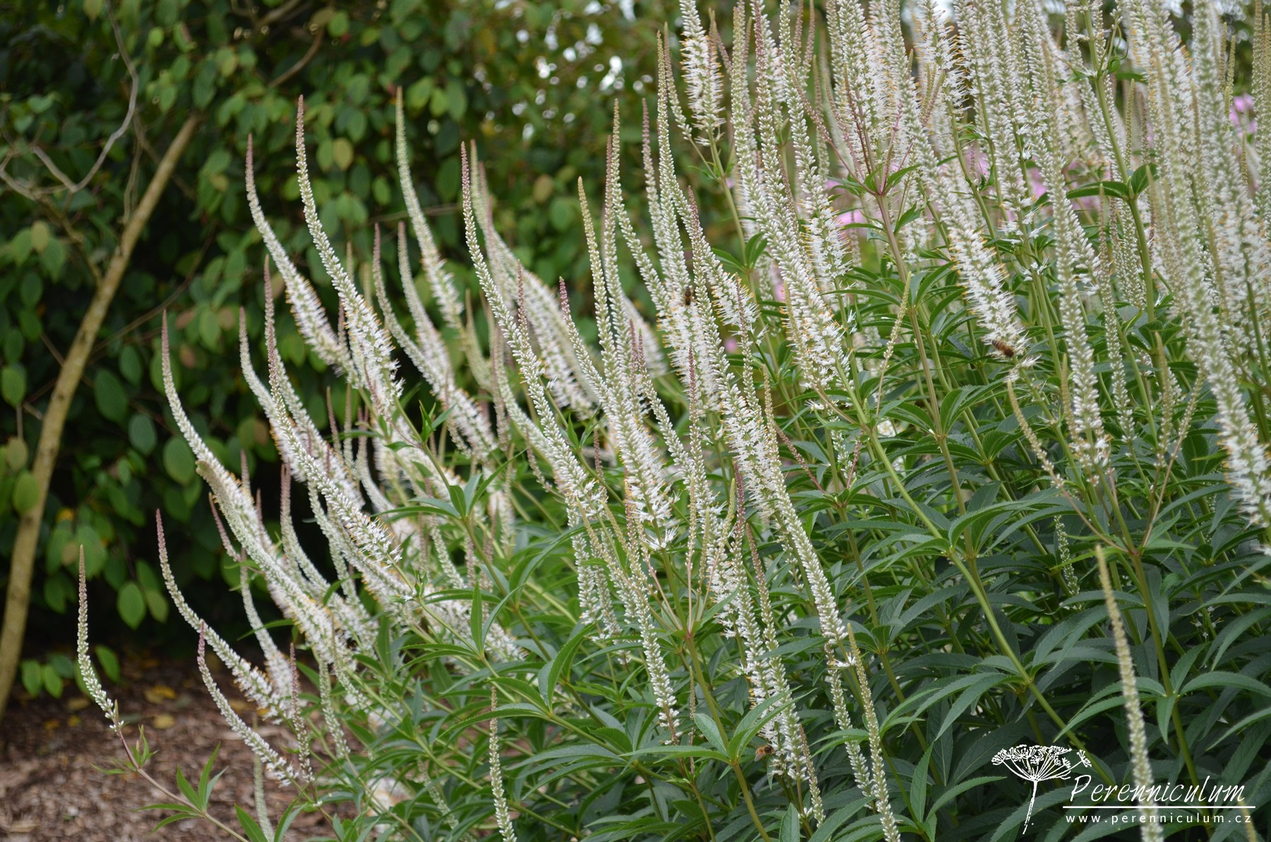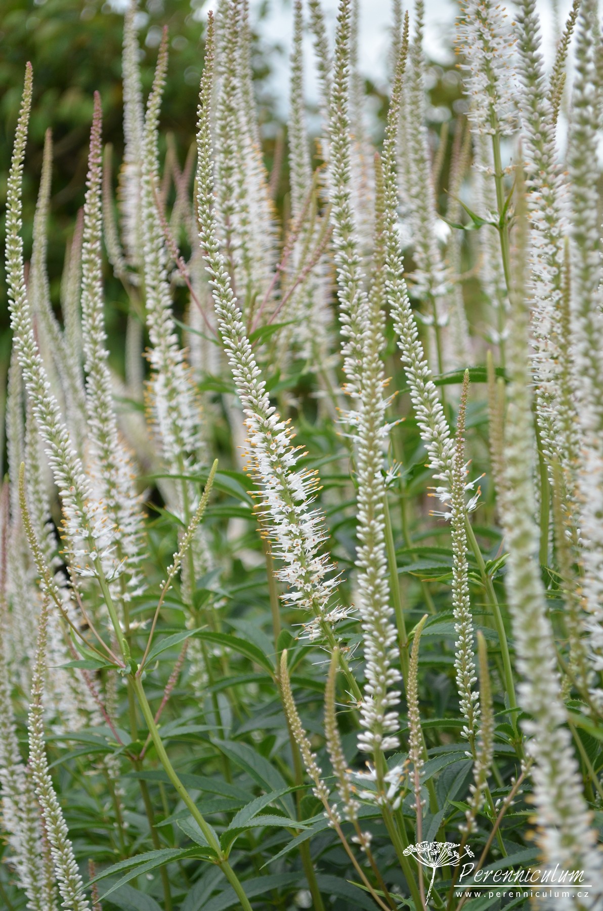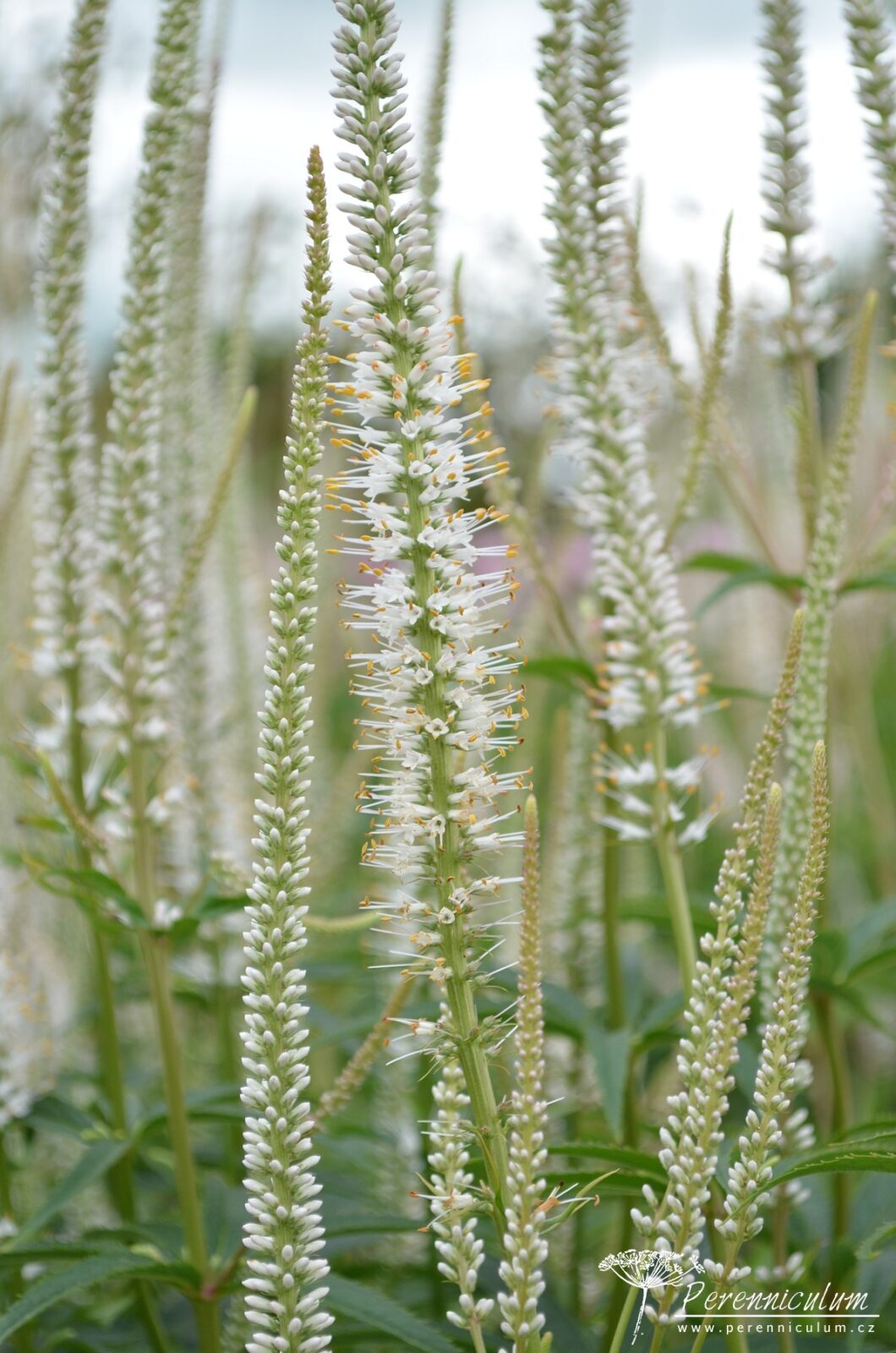 Veronicastrum virginicum je domácí trvalkou východní části Severní Ameriky, kde roste na loukách, prériích, ve světlých lesích a křovinách. Na vysokých přímých stoncích vyrůstají po 3 až 6 v přeslenech úzké, kopinaté, až 20 cm dlouhé listy. Nad posledním přeslenem listů se stonek obvykle větví, aby dal vznik několika hroznovitým, úzkým, špičatým květenstvím. Centrální (primární) hrozen se otevírá jako první a asi v půlce jeho kvetení začínají nakvétat sekundární hrozny, které jej v kruhu obklopují. Sekundární hrozny jsou obvykle kratší a užší. Květenství s poupaty se objevuje od června, ale naplno kvete až během července a srpna. Po odkvětu zůstává Veronicastrum virginicum atraktivní svými plodenstvími, která drží pohromadě (nerozpadají se) dlouho do zimy. Velmi dobře se kombinuje s vysokými trávami či trvalkami s kontrastním kulovitým květenstvím (např. Echinops ritro, Eryngium sp.). Díky své výšce se hodí spíše do pozadí perenového rabata.