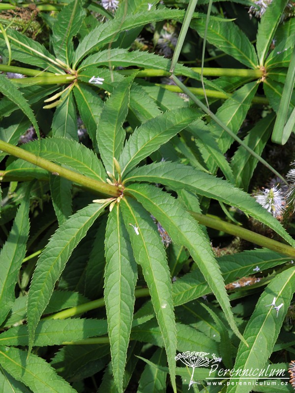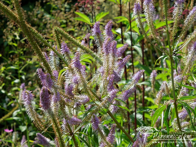 Veronicastrum virginicum je domácí trvalkou východní části Severní Ameriky, kde roste na loukách, prériích, ve světlých lesích a křovinách. Na vysokých přímých stoncích vyrůstají po 3 až 6 v přeslenech úzké, kopinaté, až 20 cm dlouhé listy. Nad posledním přeslenem listů se stonek obvykle větví, aby dal vznik několika hroznovitým, úzkým, špičatým květenstvím. Centrální (primární) hrozen se otevírá jako první a asi v půlce jeho kvetení začínají nakvétat sekundární hrozny, které jej v kruhu obklopují. Sekundární hrozny jsou obvykle kratší a užší. Květenství s poupaty se objevuje od června, ale naplno kvete až během července a srpna. Po odkvětu zůstává Veronicastrum virginicum atraktivní svými plodenstvími, která drží pohromadě (nerozpadají se) dlouho do zimy. Velmi dobře se kombinuje s vysokými trávami či trvalkami s kontrastním kulovitým květenstvím (např. Echinops ritro, Eryngium sp.). Díky své výšce se hodí spíše do pozadí perenového rabata.