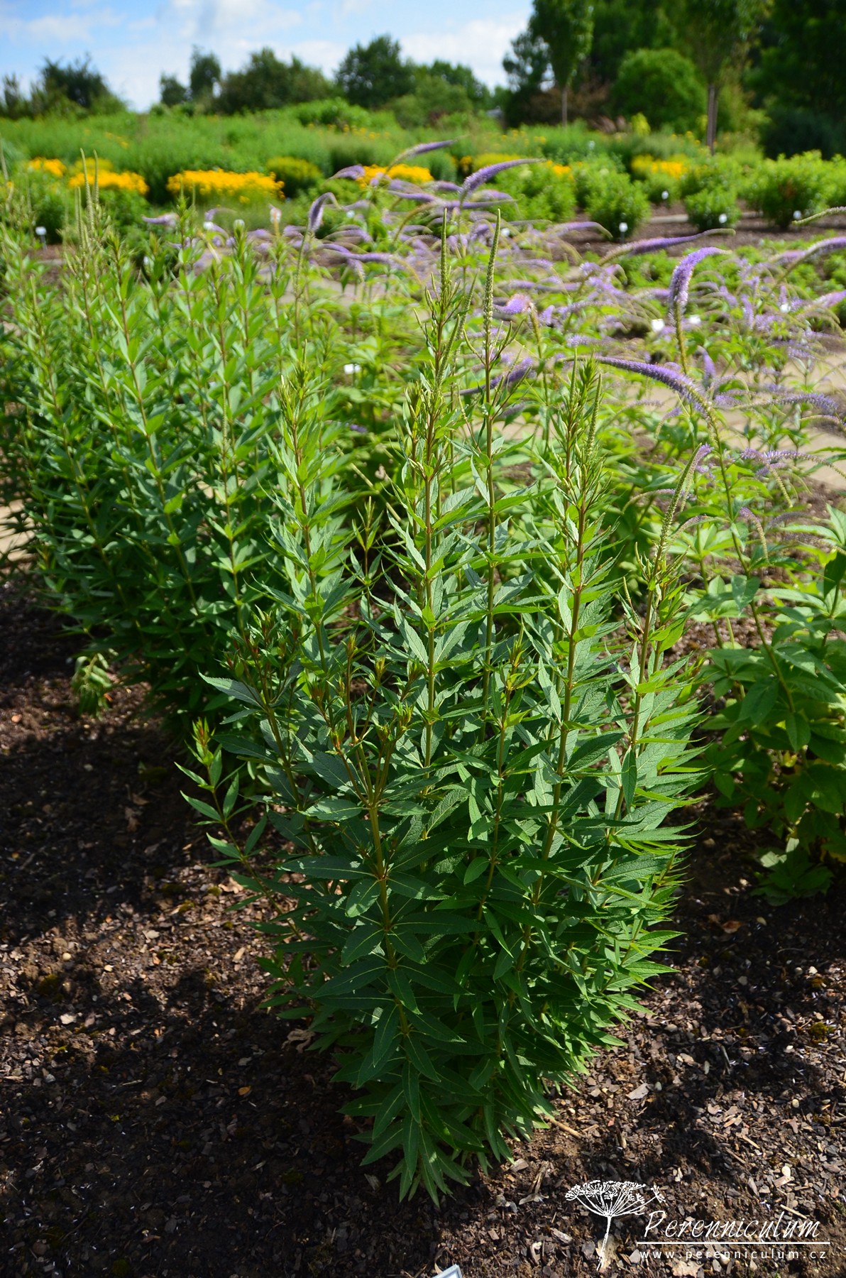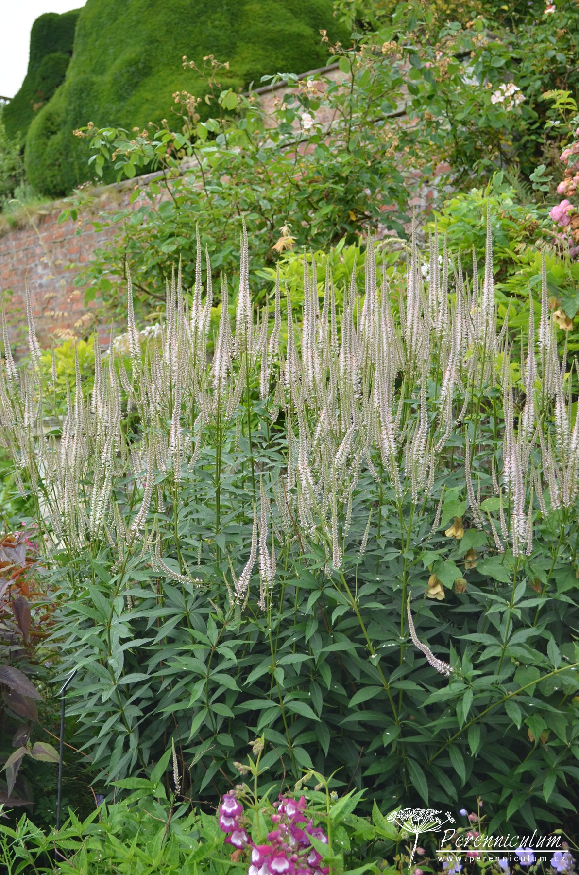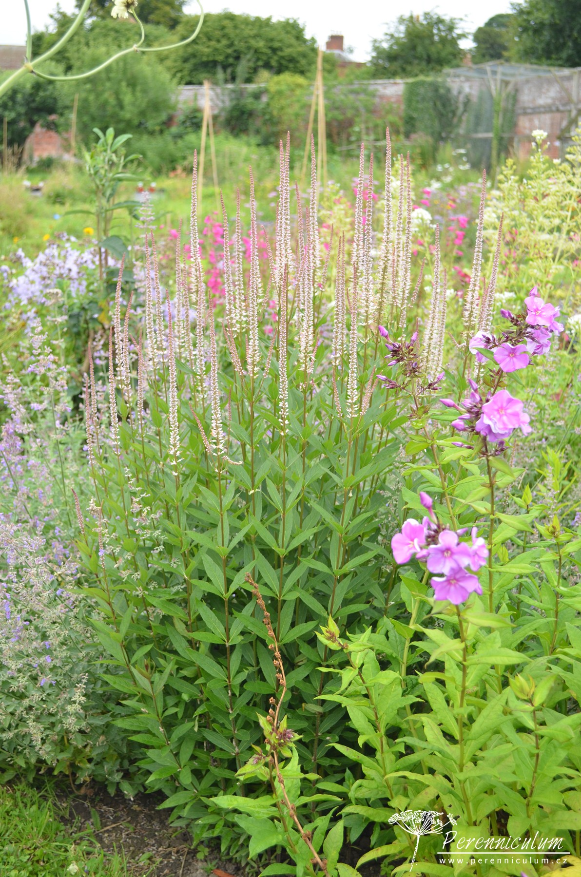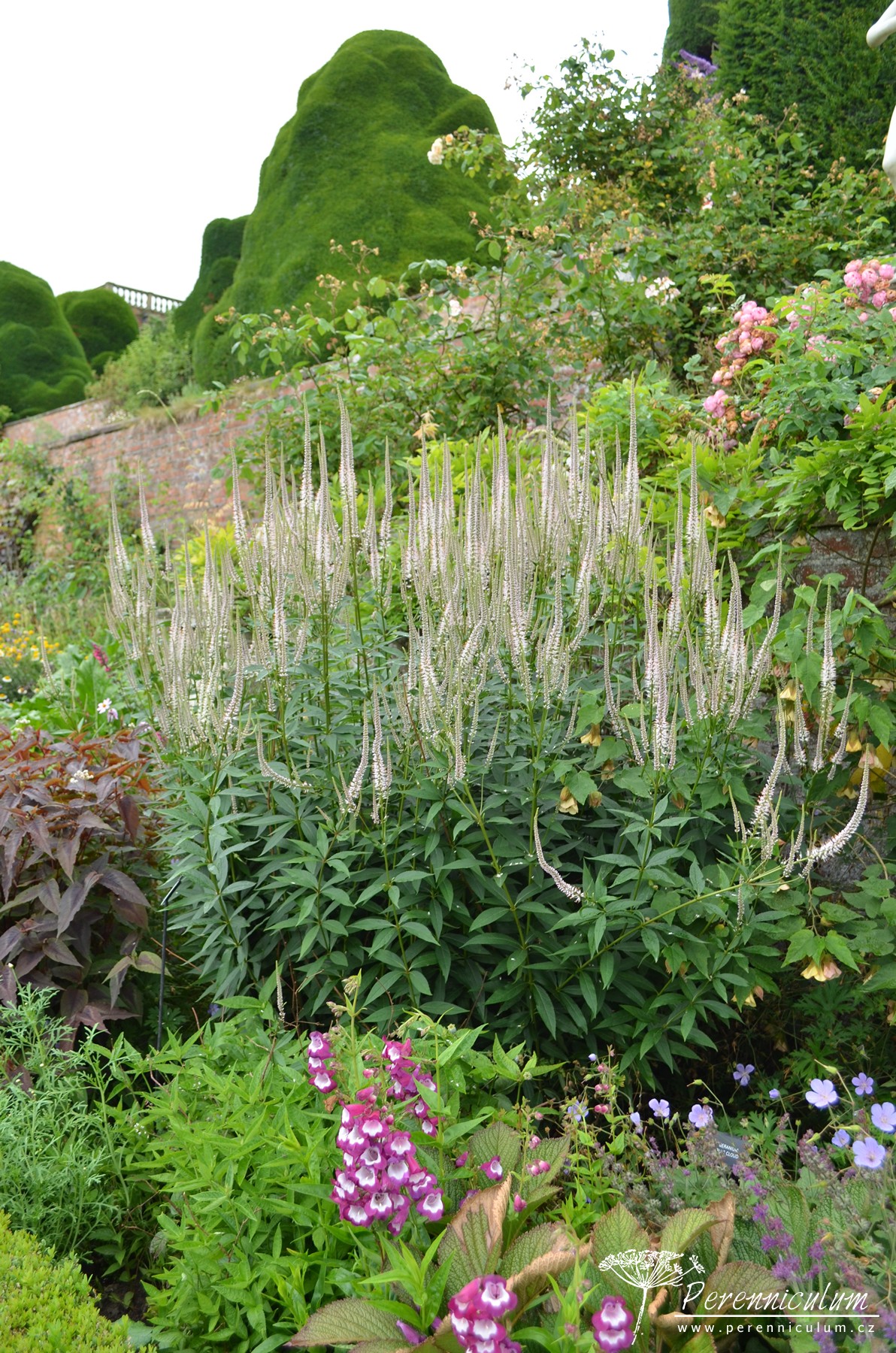 Veronicastrum virginicum je domácí trvalkou východní části Severní Ameriky, kde roste na loukách, prériích, ve světlých lesích a křovinách. Na vysokých přímých stoncích vyrůstají po 3 až 6 v přeslenech úzké, kopinaté, až 20 cm dlouhé listy. Nad posledním přeslenem listů se stonek obvykle větví, aby dal vznik několika hroznovitým, úzkým, špičatým květenstvím. Centrální (primární) hrozen se otevírá jako první a asi v půlce jeho kvetení začínají nakvétat sekundární hrozny, které jej v kruhu obklopují. Sekundární hrozny jsou obvykle kratší a užší. Květenství s poupaty se objevuje od června, ale naplno kvete až během července a srpna. Po odkvětu zůstává Veronicastrum virginicum atraktivní svými plodenstvími, která drží pohromadě (nerozpadají se) dlouho do zimy. Velmi dobře se kombinuje s vysokými trávami či trvalkami s kontrastním kulovitým květenstvím (např. Echinops ritro, Eryngium sp.). Díky své výšce se hodí spíše do pozadí perenového rabata.