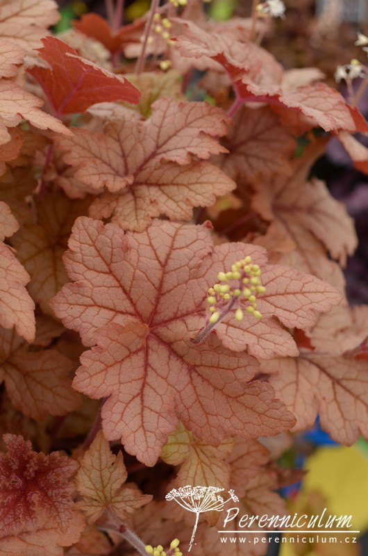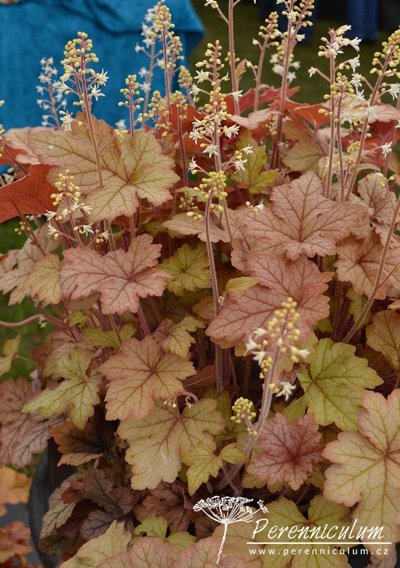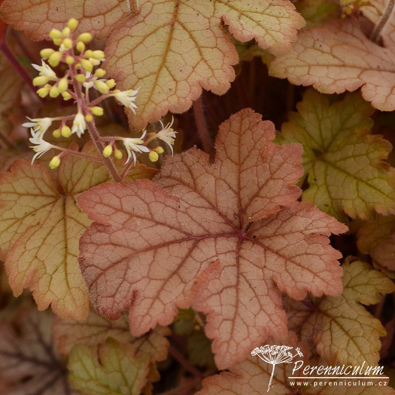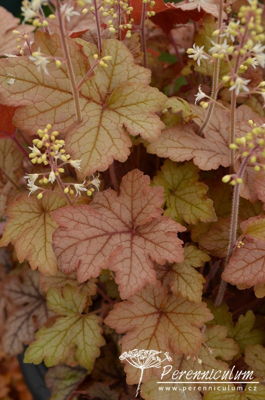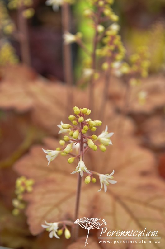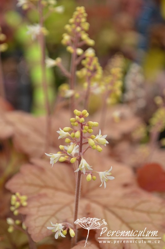 × Heucherella je zahradní, mezidruhový hybrid Heuchera a Tiarella, který nebyl nalezen nikde v přírodě. První hojně rozšířený kultivar × Heucherella 'Bridget Bloom' byl vyšlechtěn v anglické školce Blooms of Bressingham v roce 1955 zkřížením Heuchera × brizoides a Tiarella wherryi.